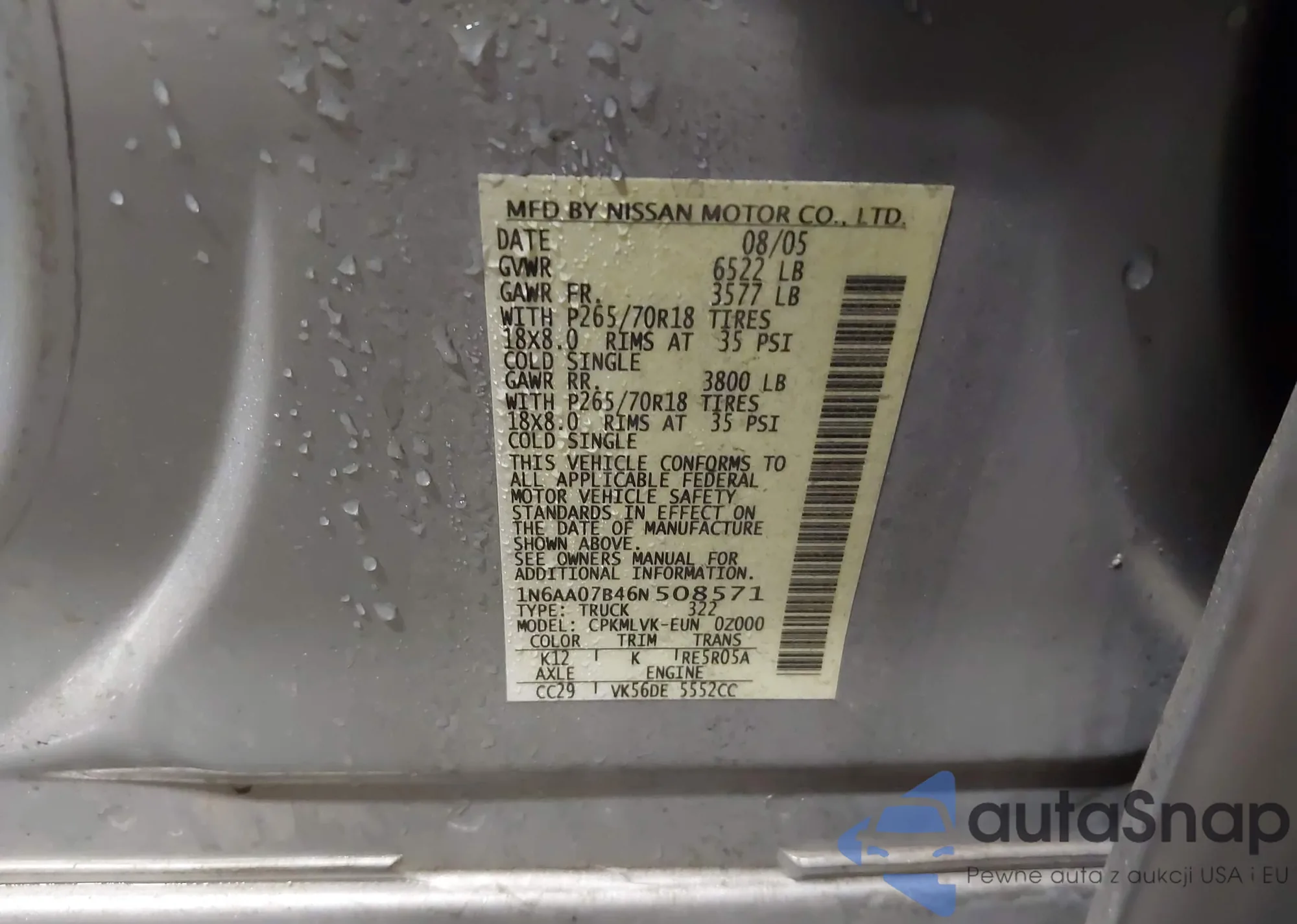 • VIN: 1N6AA07B46N508571