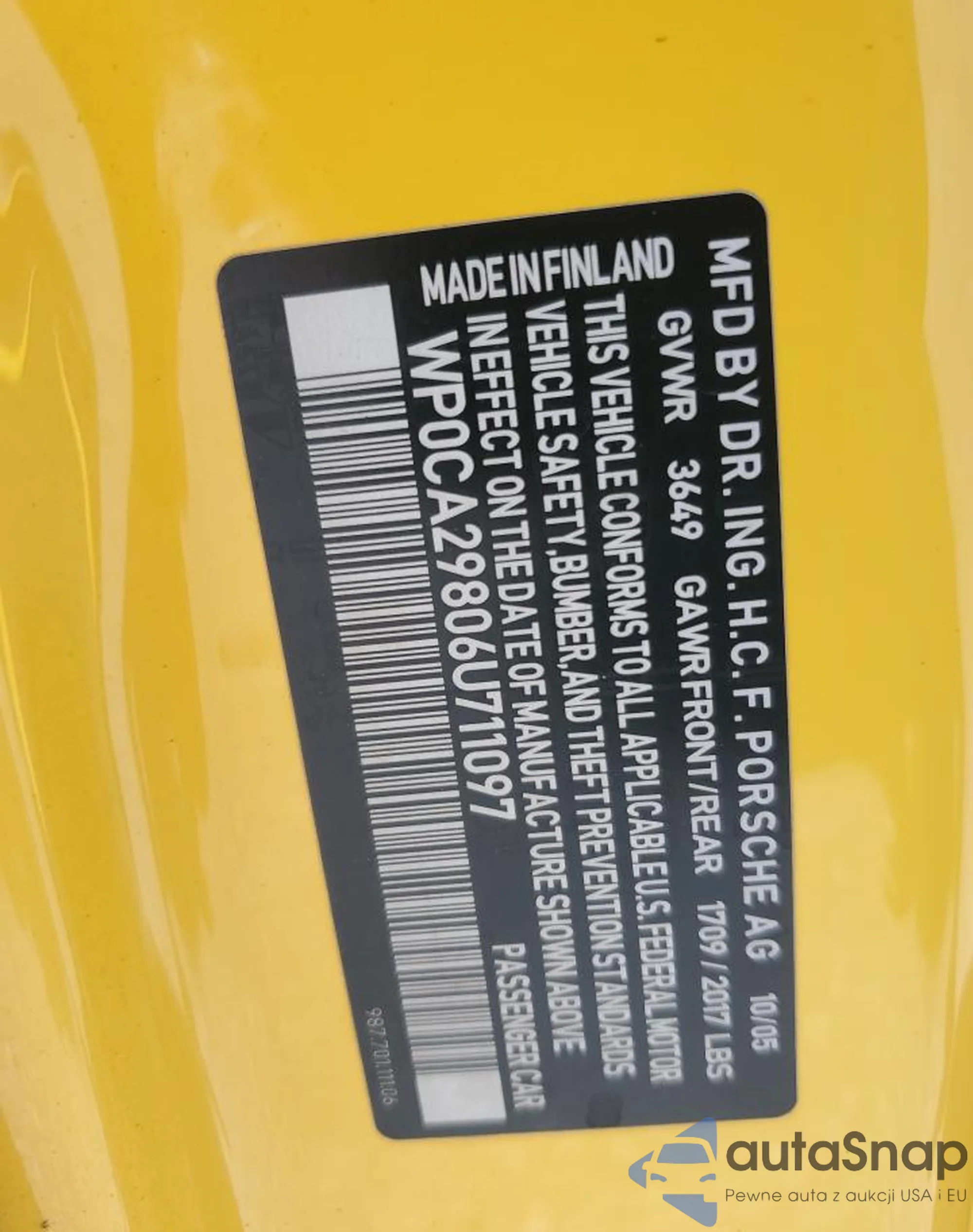 VIN: WP0CA29806U711097