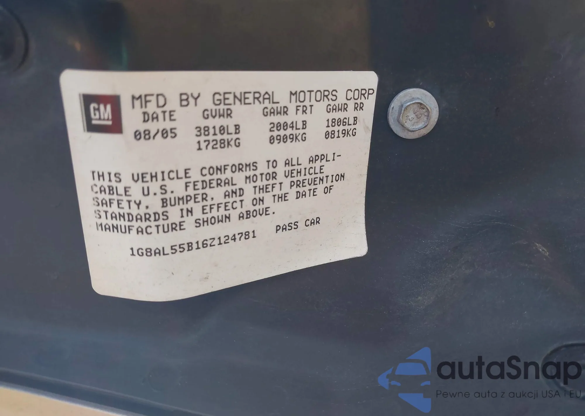 VIN: 1G8AL55B16Z124781