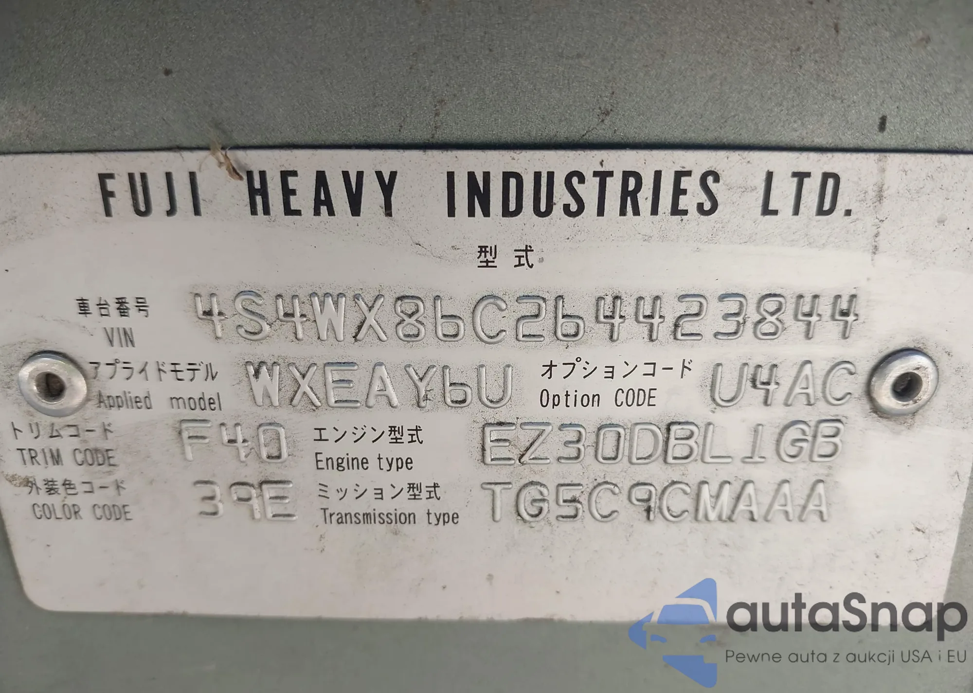 Автомобиль Subaru Tribeca 2006 (VIN 4S4WX86C264423844) имеет документы, препятствующие регистрации. Могут возникнуть сложности при экспорте и регистрации. Обратитесь к экспертам AutaSnap для поиска альтернатив.
