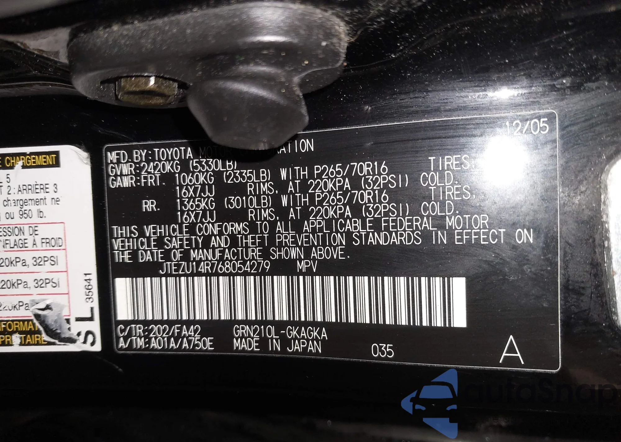 VIN: JTEZU14R768054279