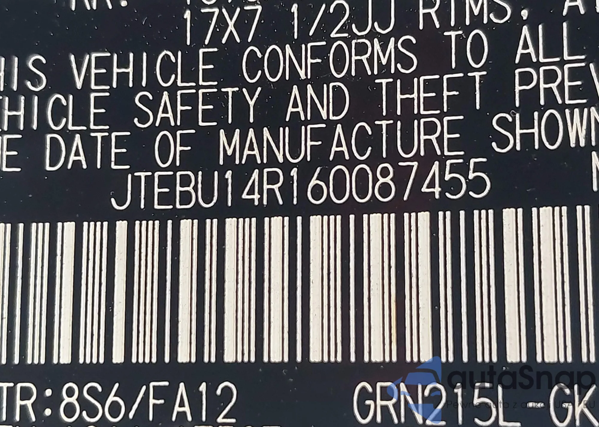 VIN: JTEBU14R160087455
