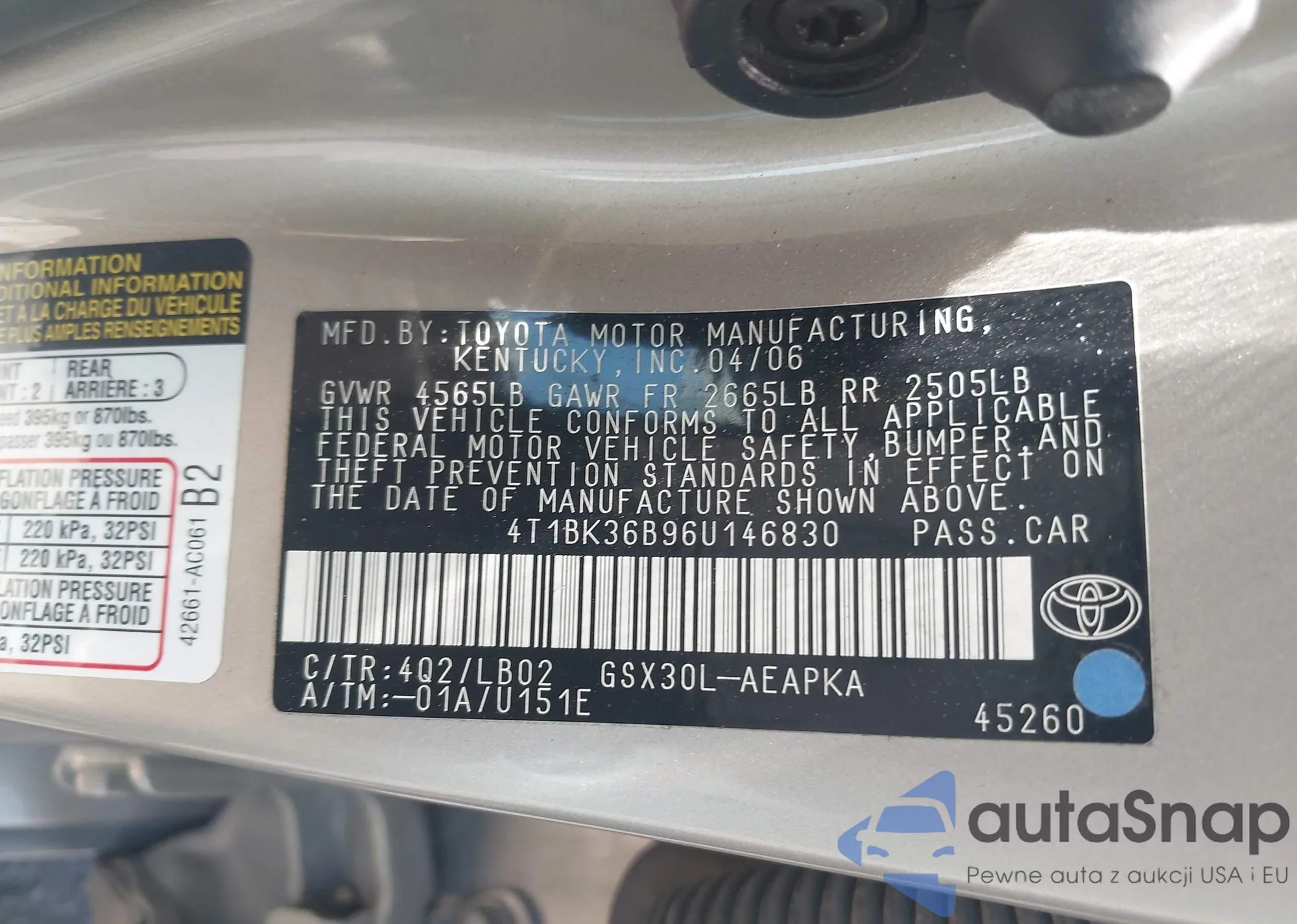 VIN: 4T1BK36B96U146830