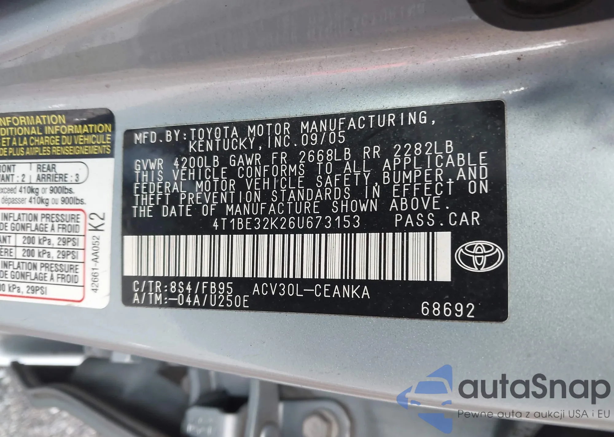 VIN: 4T1BE32K26U673153
