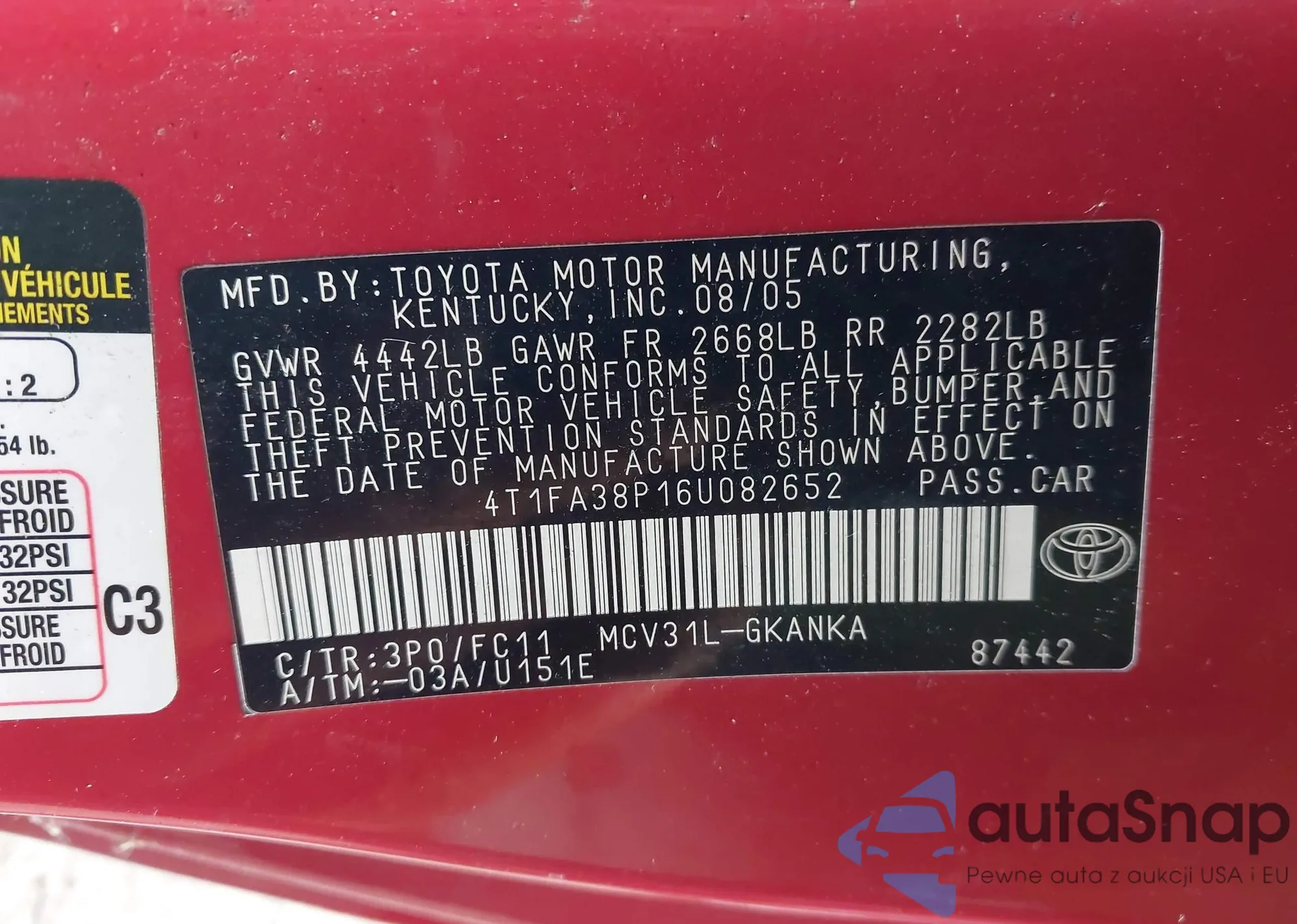 VIN: 4T1FA38P16U082652