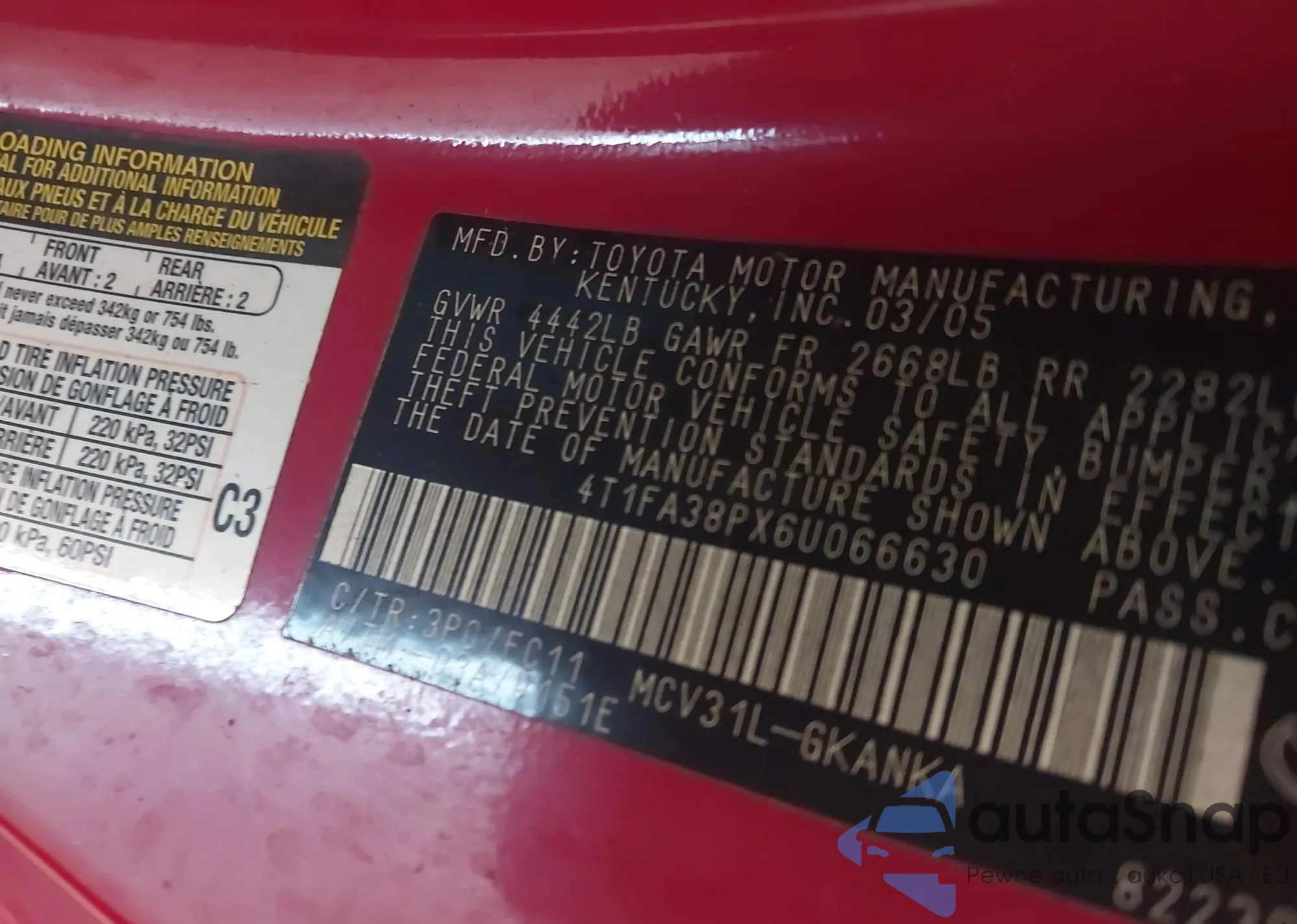 VIN: 4T1FA38PX6U066630