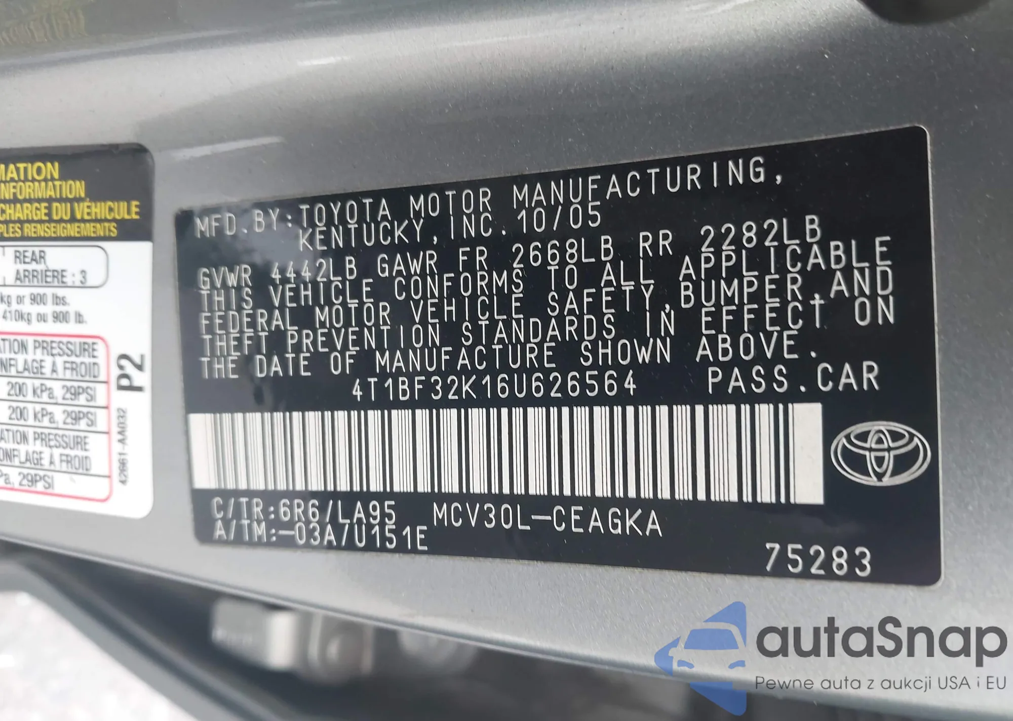 VIN: 4T1BF32K16U626564