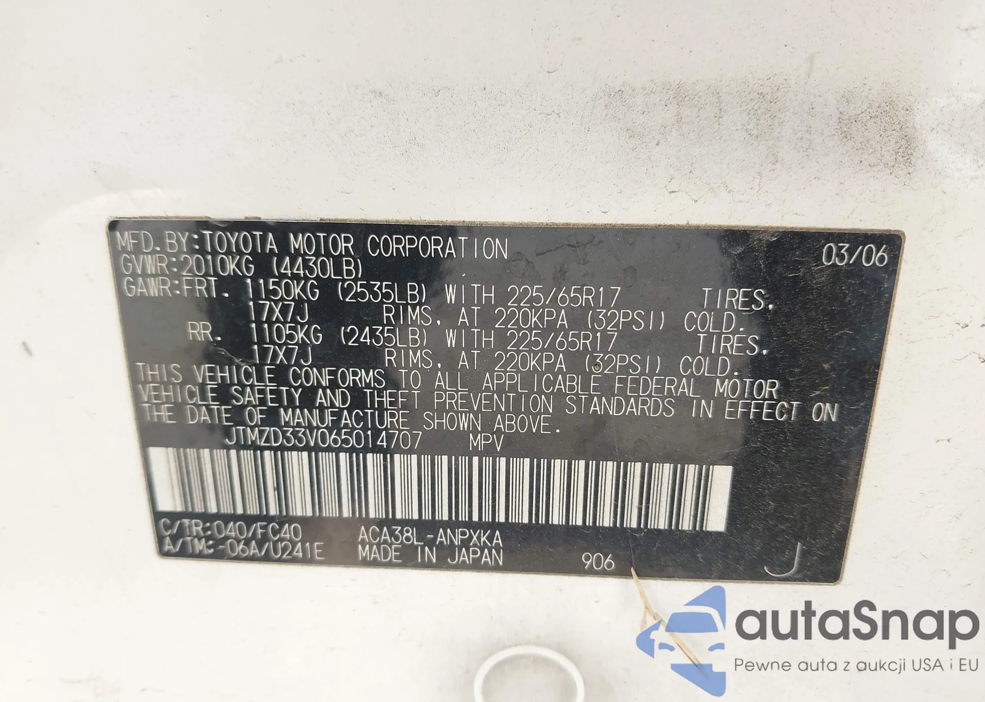VIN: JTMZD33V065014707