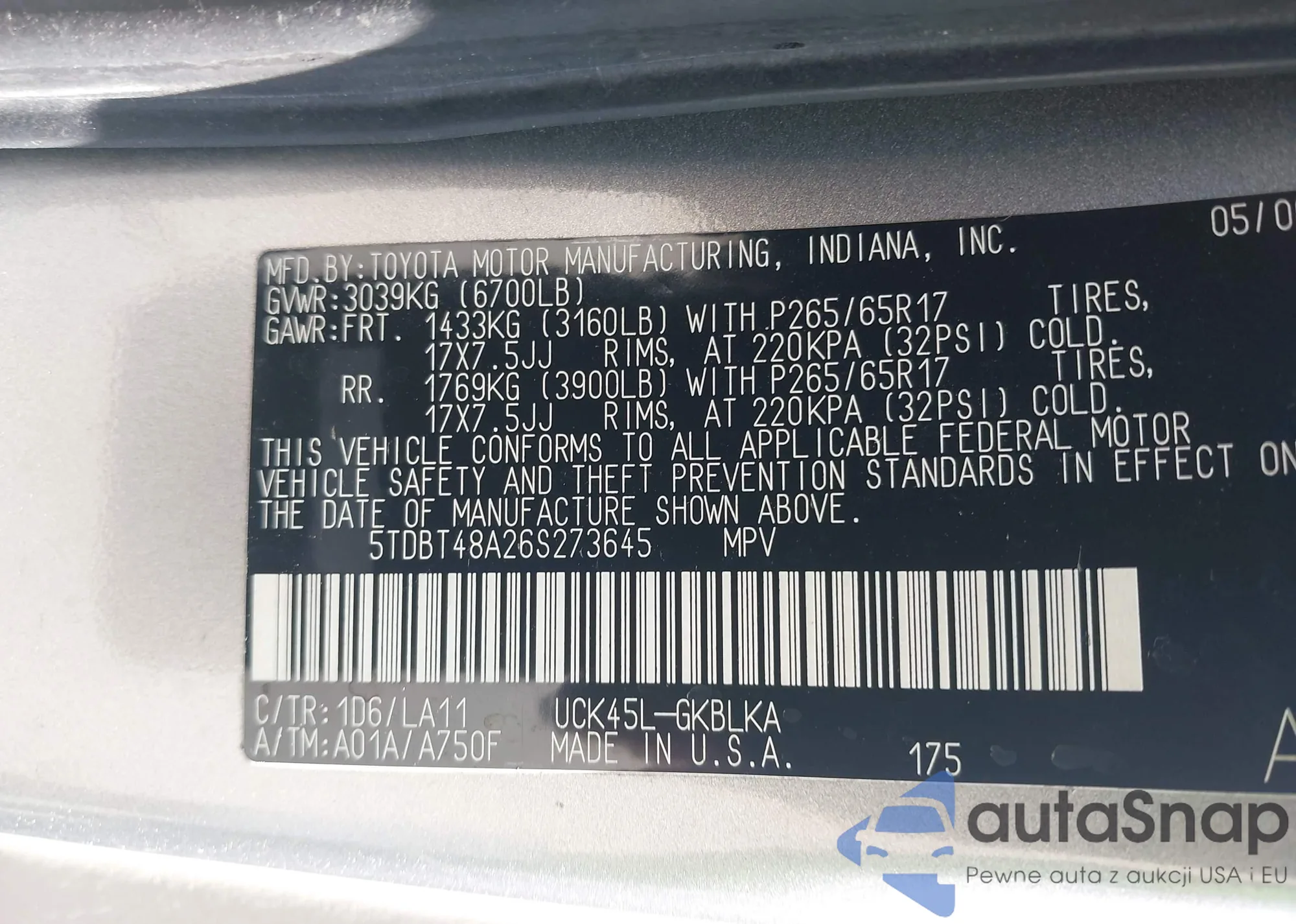 VIN: 5TDBT48A26S273645