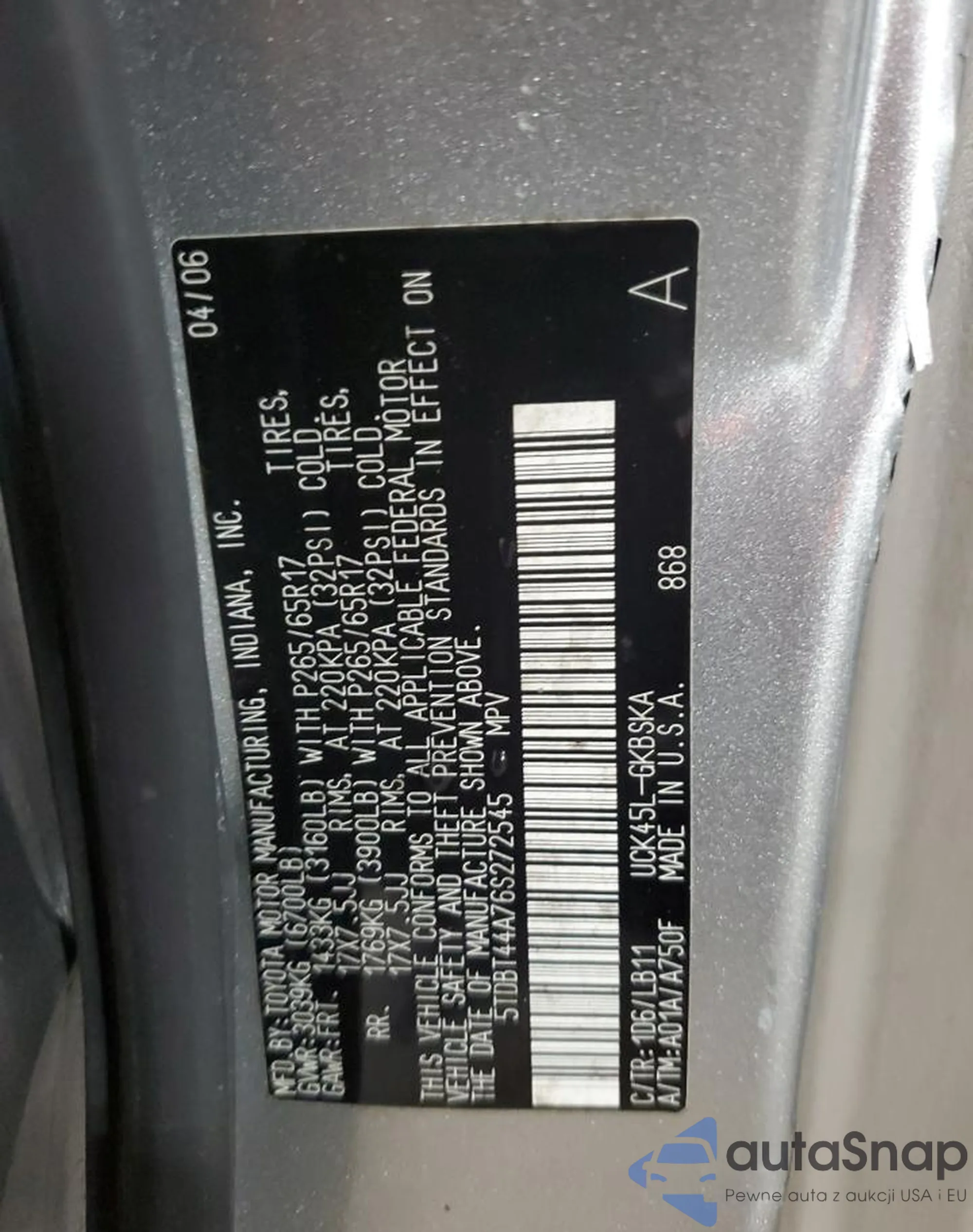 VIN: 5TDBT44A76S272545