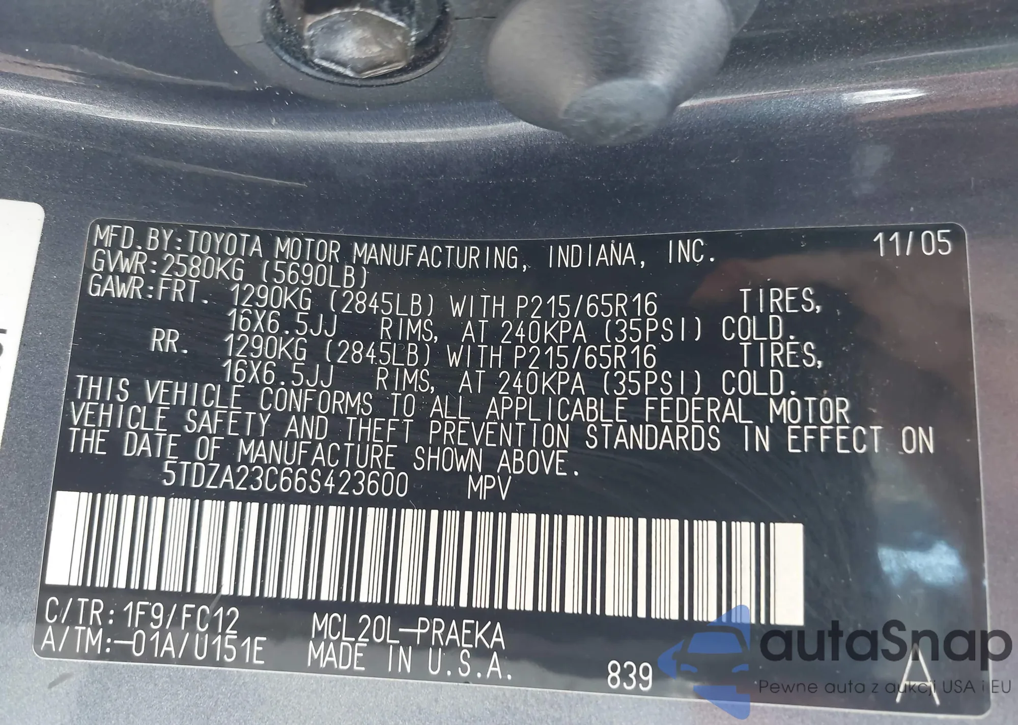 VIN: 5TDZA23C66S423600