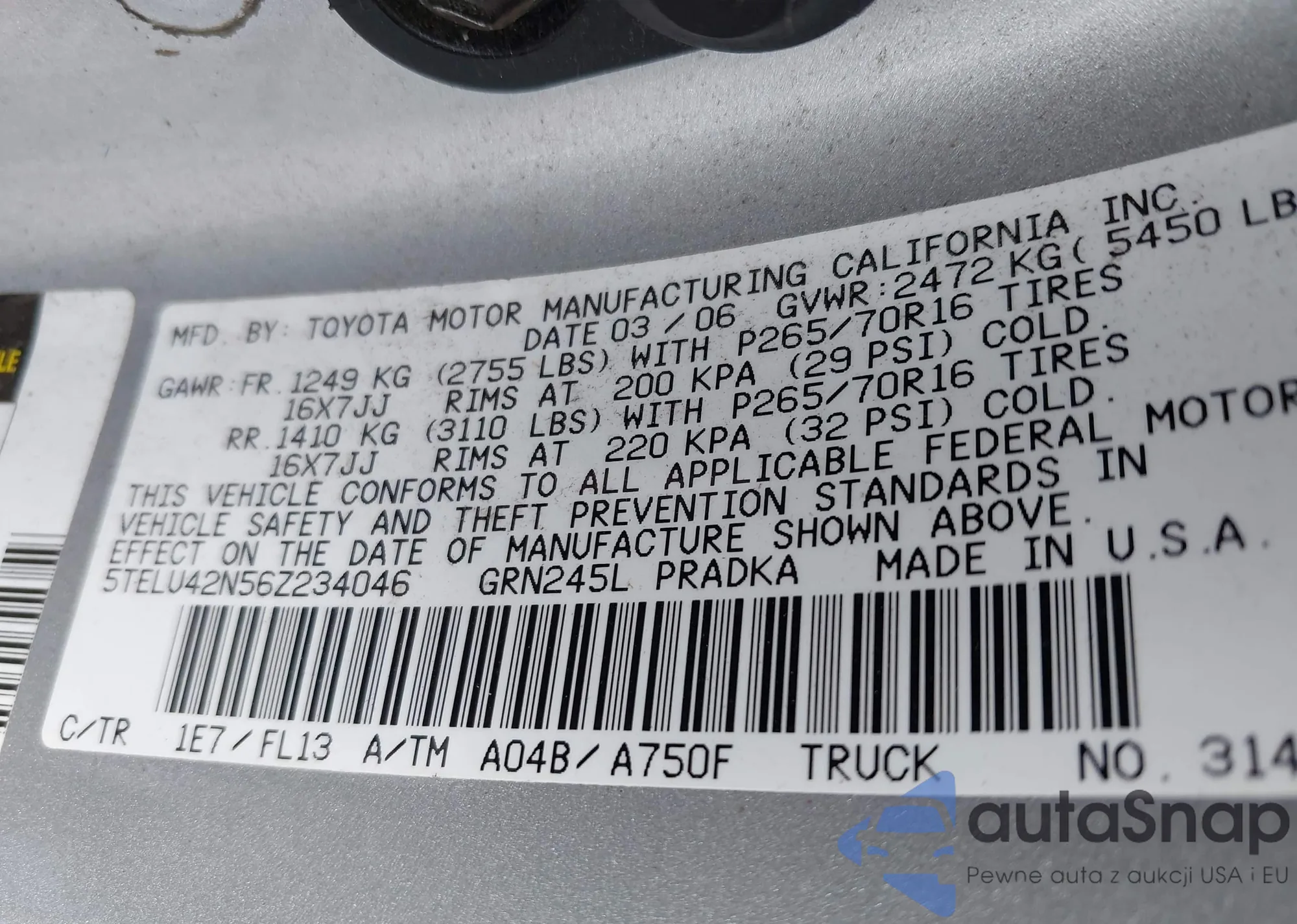 Toyota Tacoma 2006 – История автомобиля (продан на IAAI)