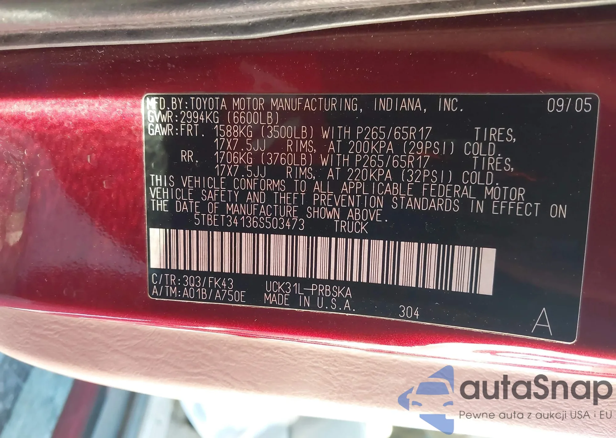 • VIN: 5TBET34136S503473