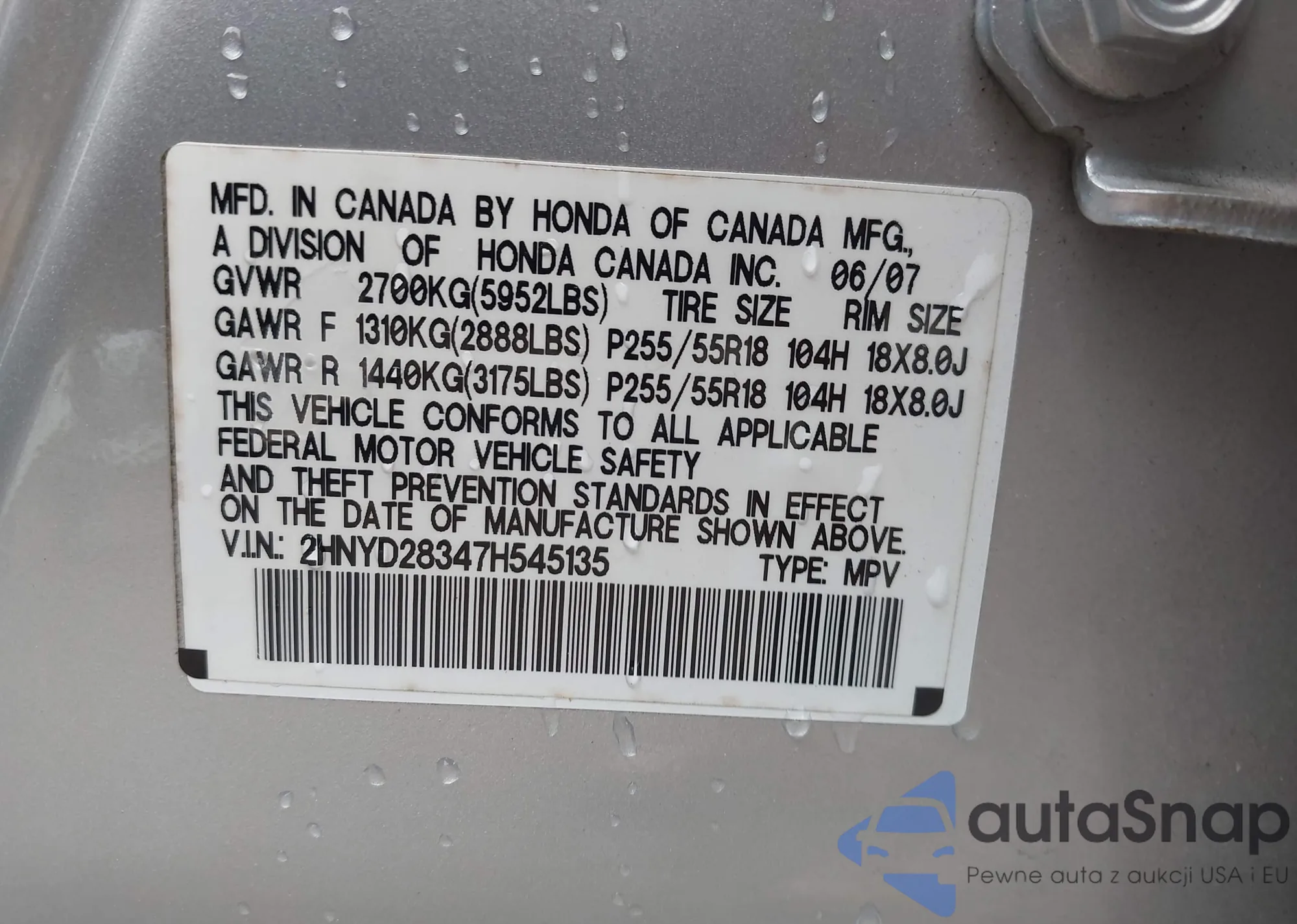 VIN: 2HNYD28347H545135