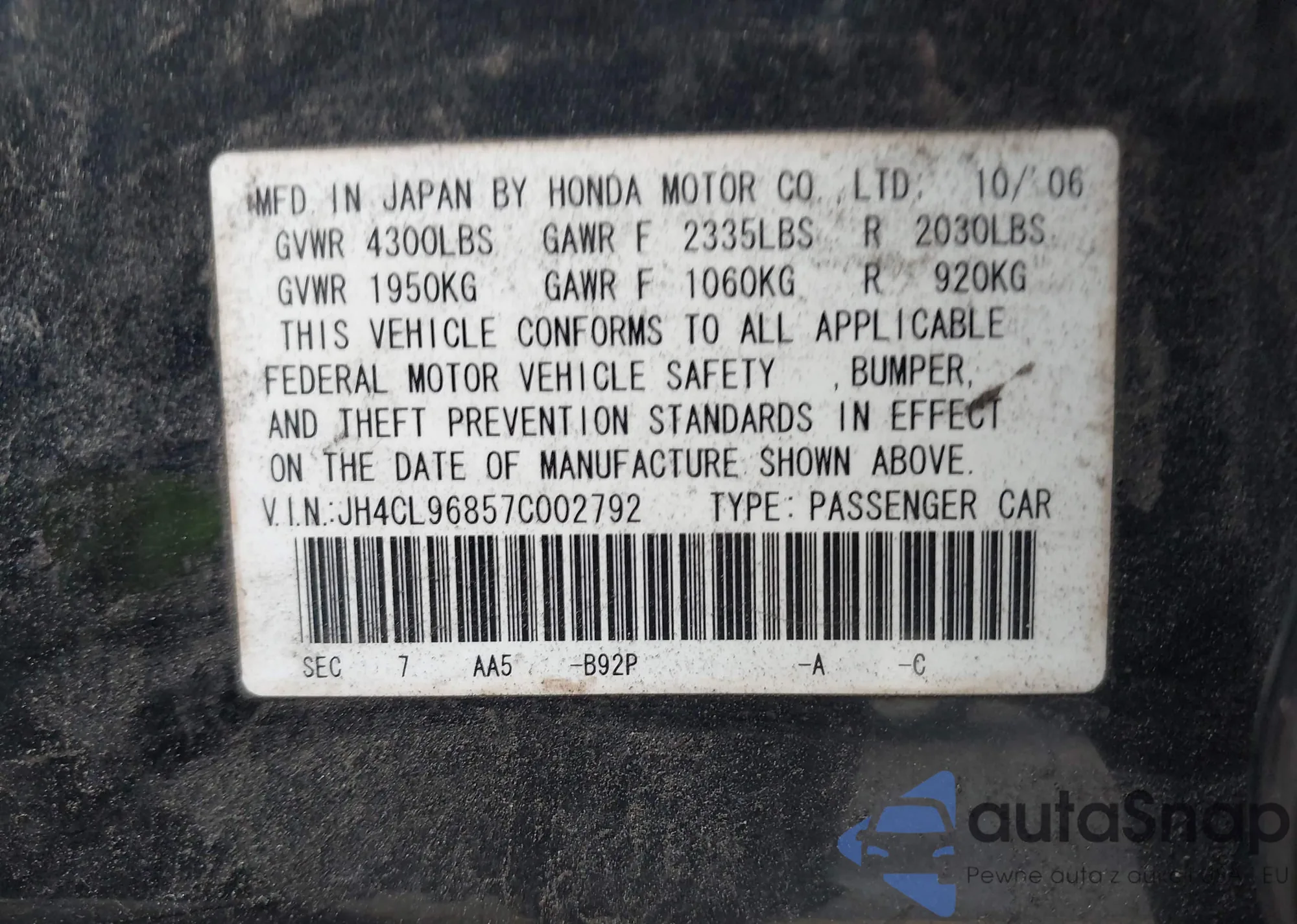 VIN: JH4CL96857C002792