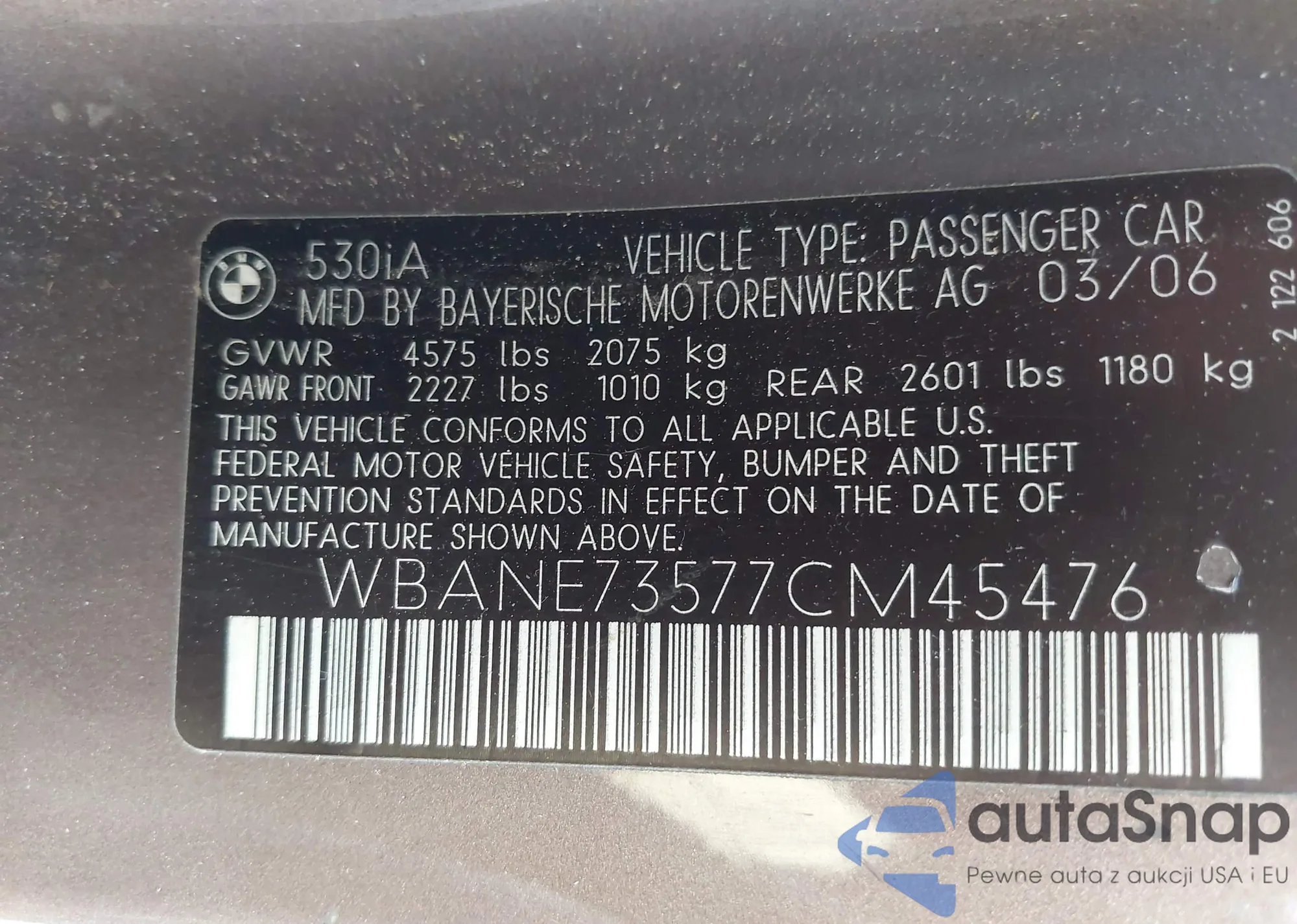 VIN: WBANE73577CM45476