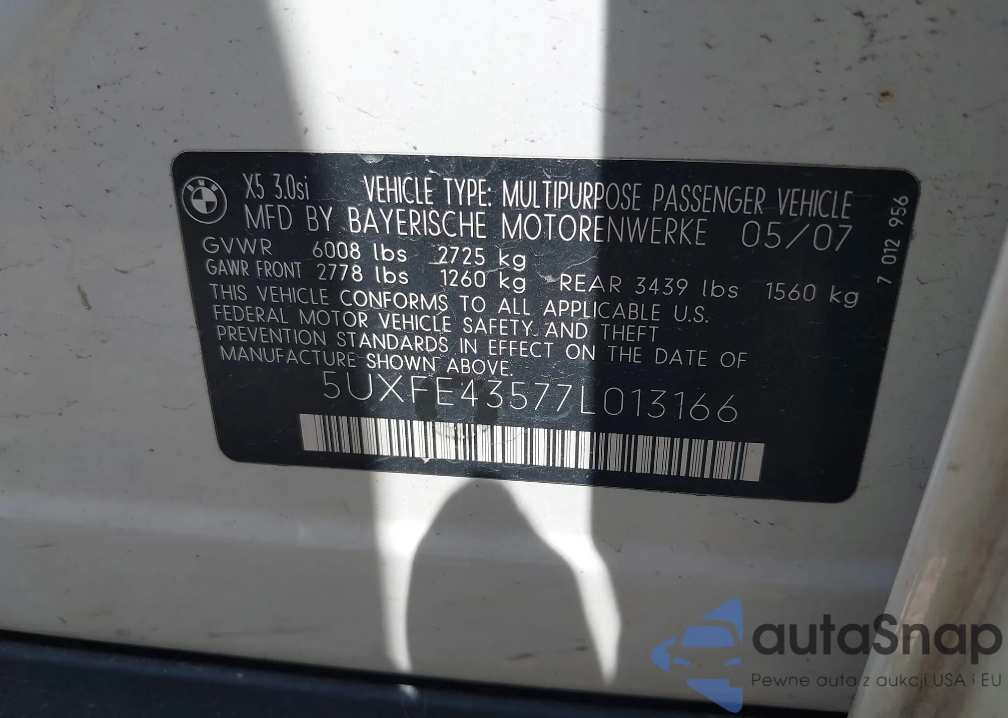 VIN: 5UXFE43577L013166