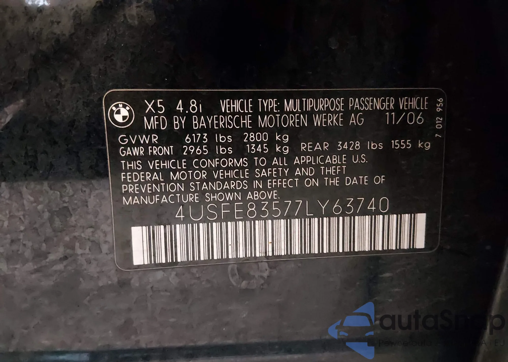 Автомобиль BMW X5 2007 (VIN 4USFE83577LY63740) имеет документы, препятствующие регистрации. Могут возникнуть сложности при экспорте и регистрации. Обратитесь к экспертам AutaSnap для поиска альтернатив.