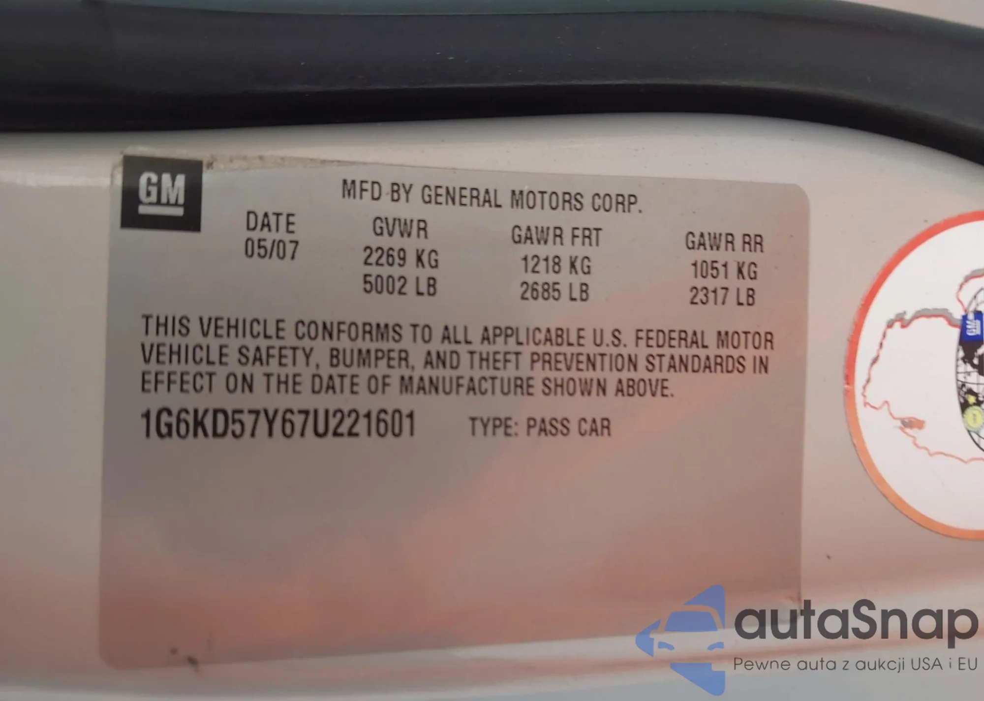 VIN: 1G6KD57Y67U221601