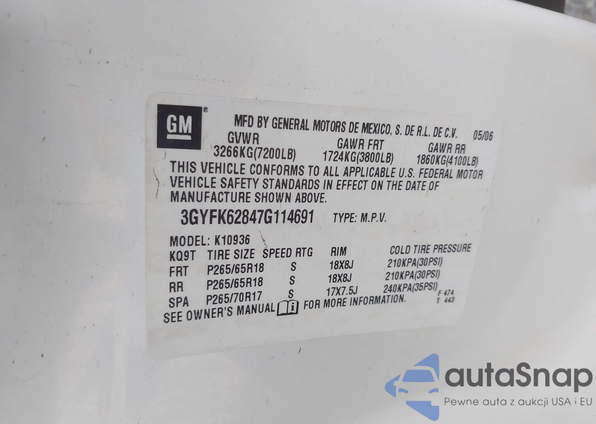 VIN: 3GYFK62847G114691