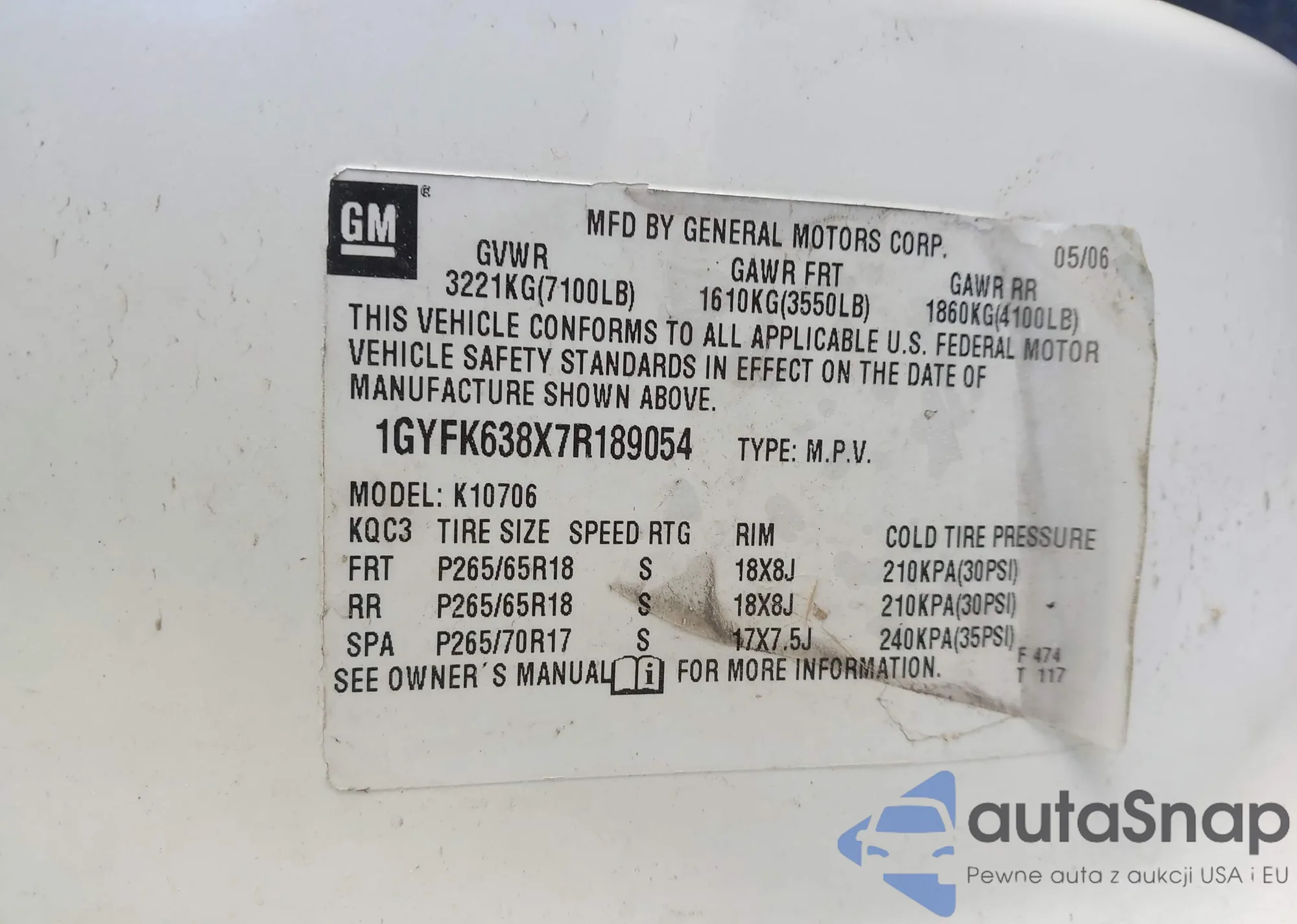 VIN: 1GYFK638X7R189054