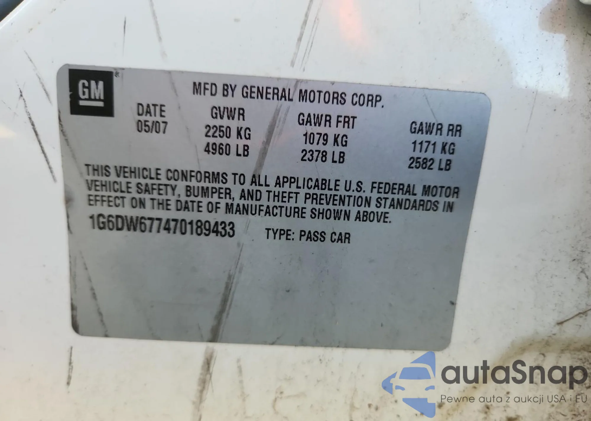 VIN: 1G6DW677470189433