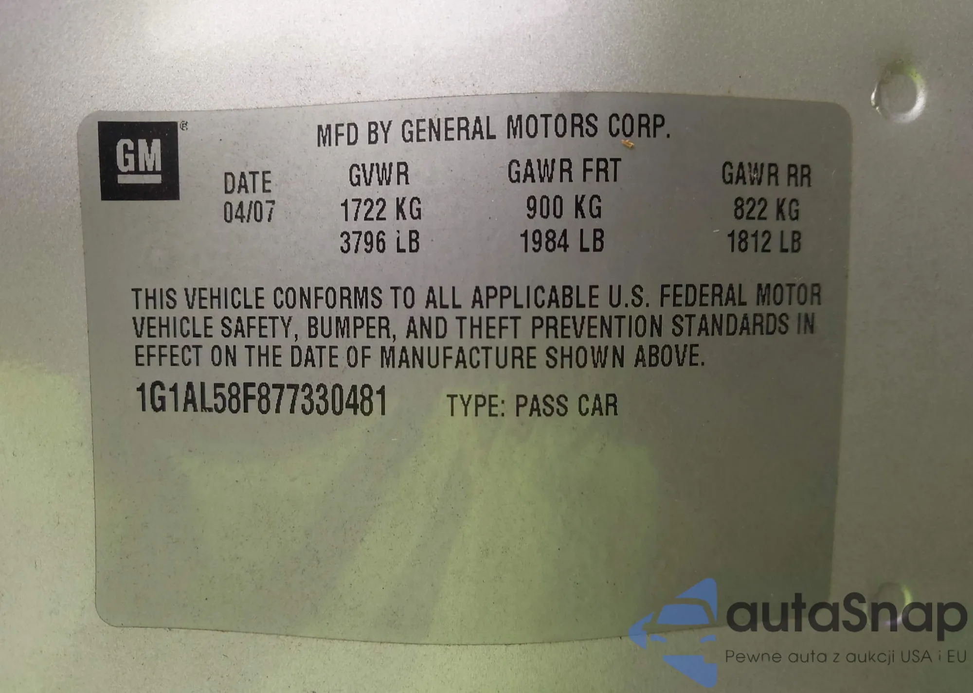 VIN: 1G1AL58F877330481