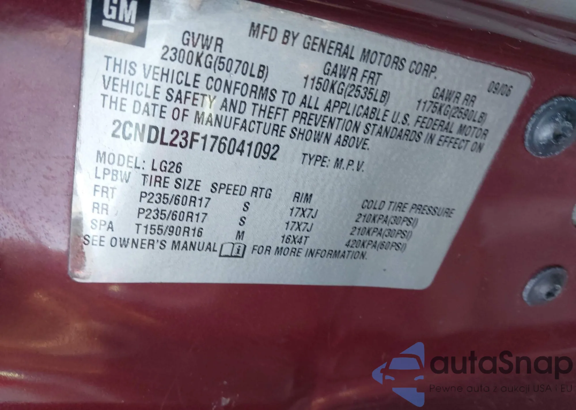 VIN: 2CNDL23F176041092