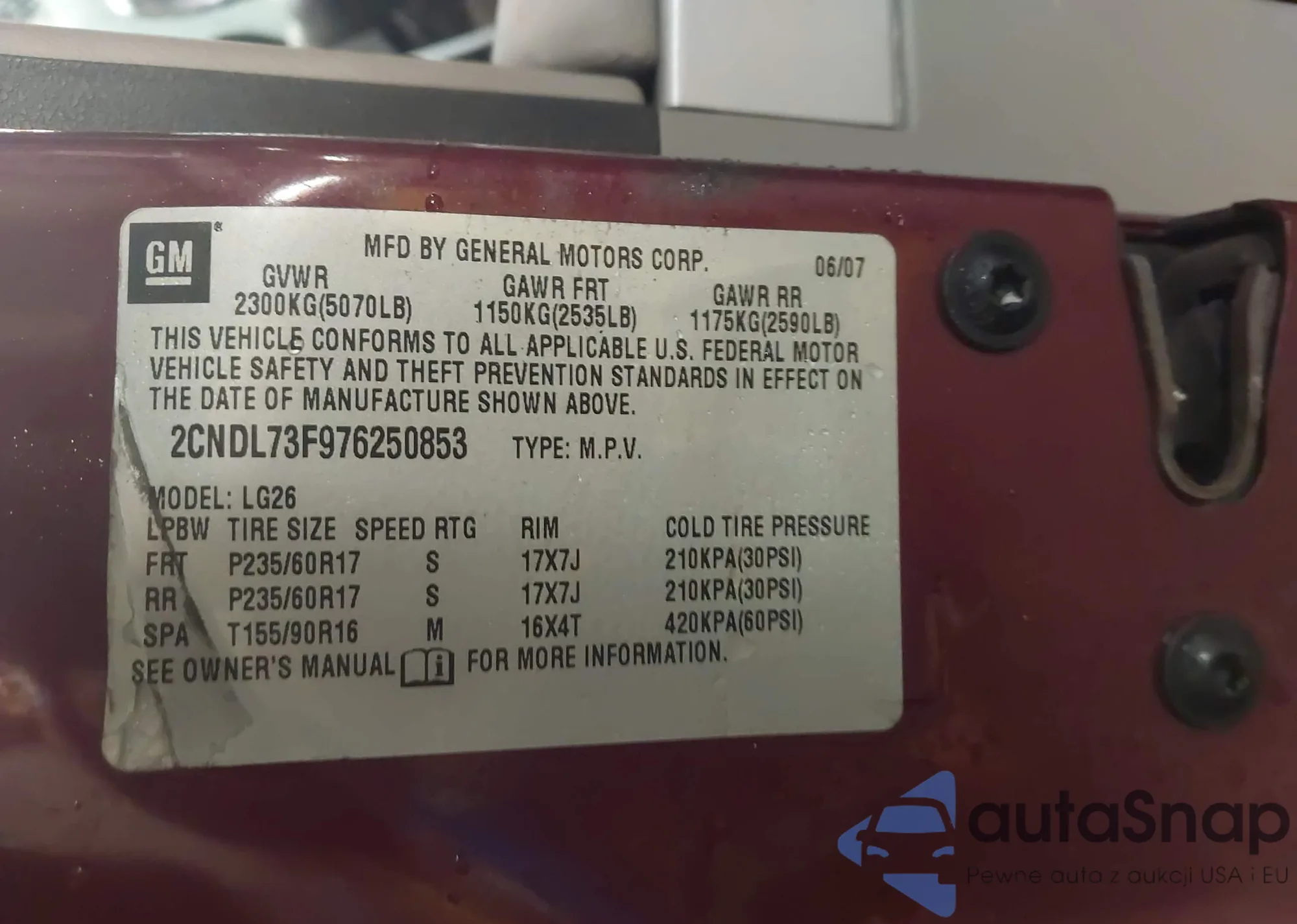 • VIN: 2CNDL73F976250853