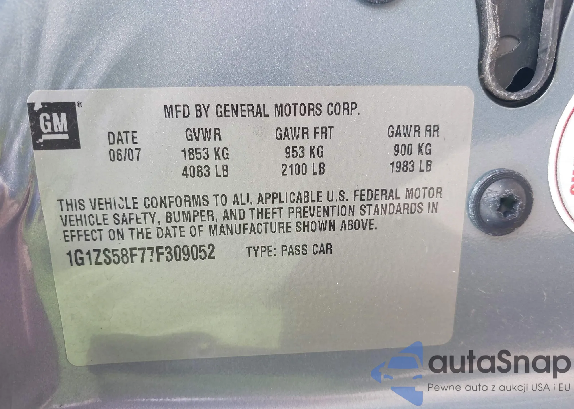 VIN: 1G1ZS58F77F309052