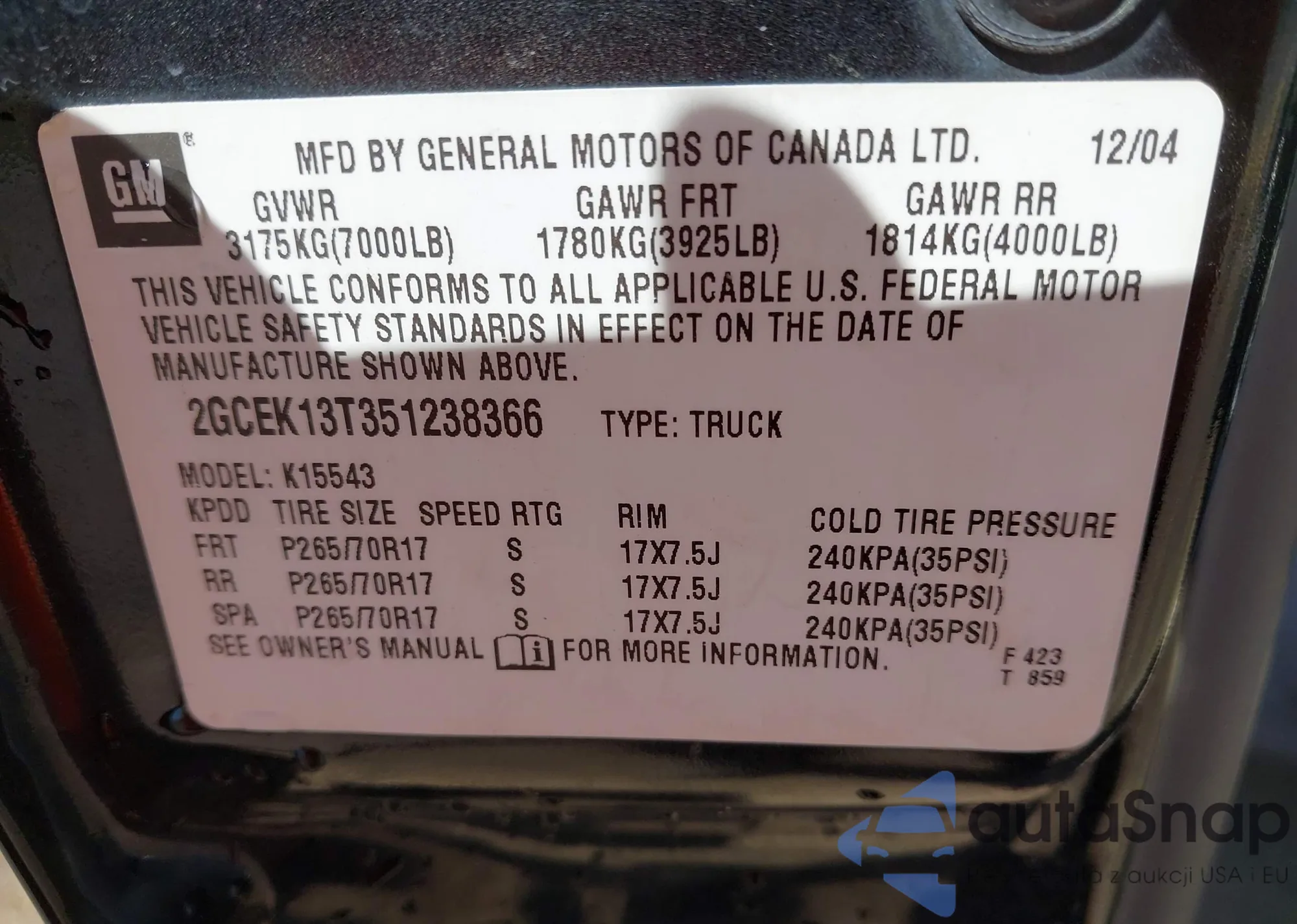 • VIN: 2GCEC13V171156914