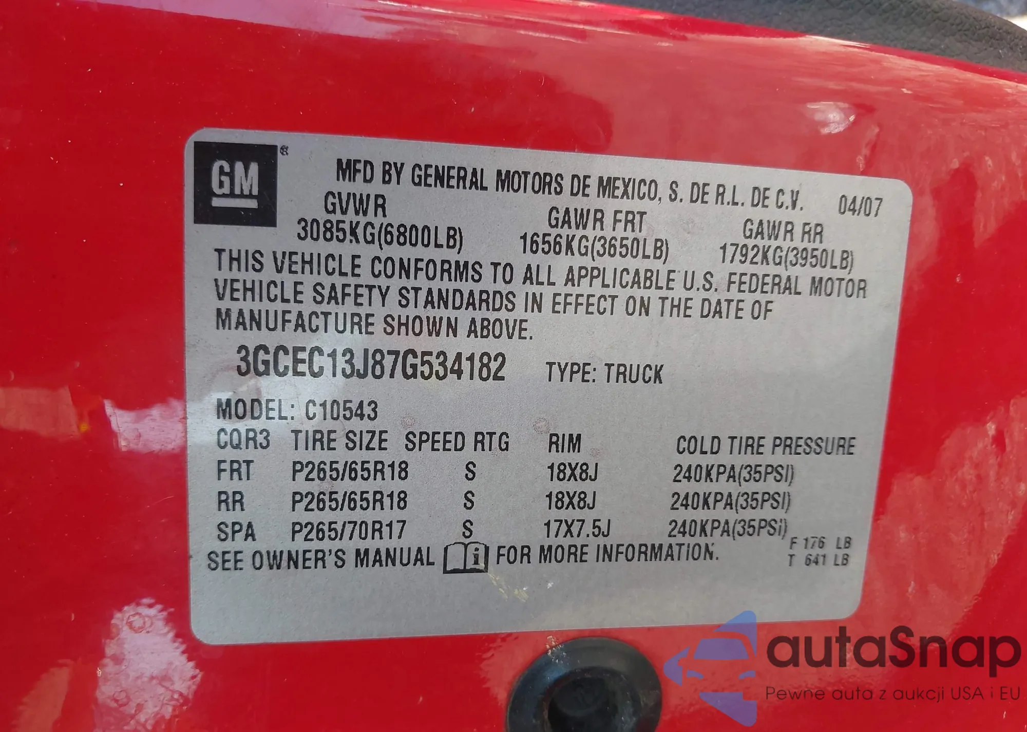 VIN: 3GCEC13J87G534182