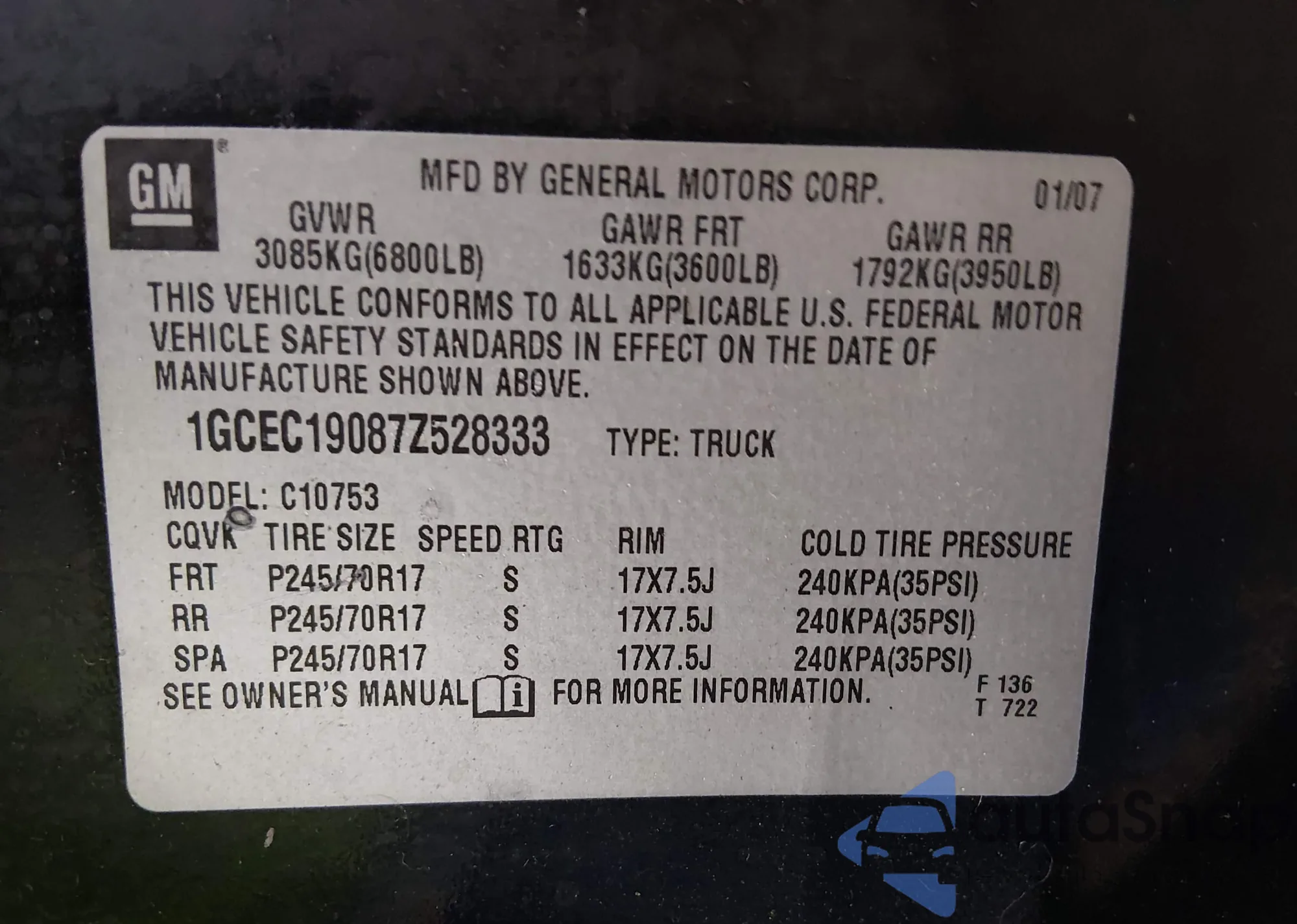 Автомобиль Chevrolet Silverado 2007 (VIN 1GCEC19087Z528333) продаётся непроверенным продавцом. Рекомендуем проверить отчет Carfax и подтвердить возможность регистрации перед покупкой.
