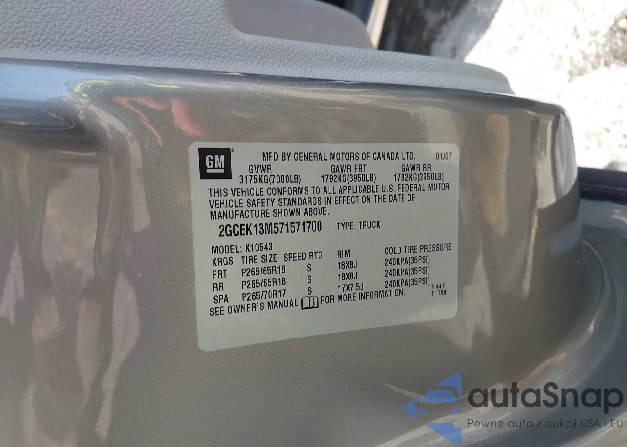 • VIN: 2GCEK13M571571700