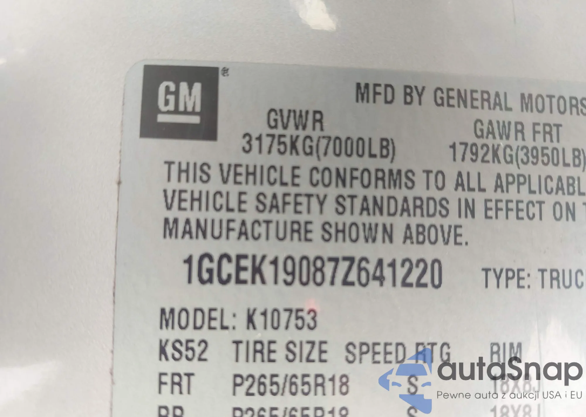 VIN: 1GCEK19087Z641220