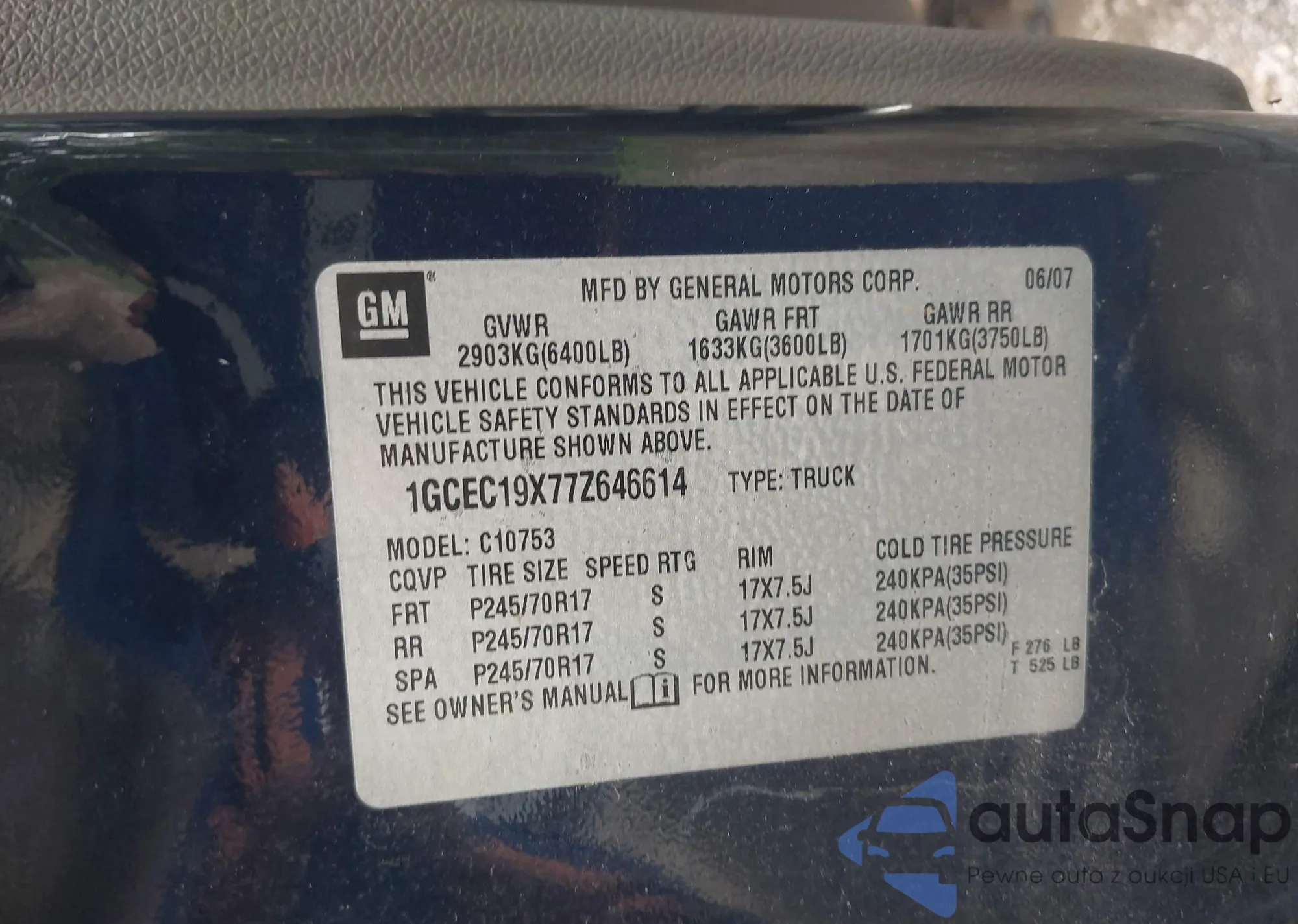VIN: 1GCEC19X77Z646614