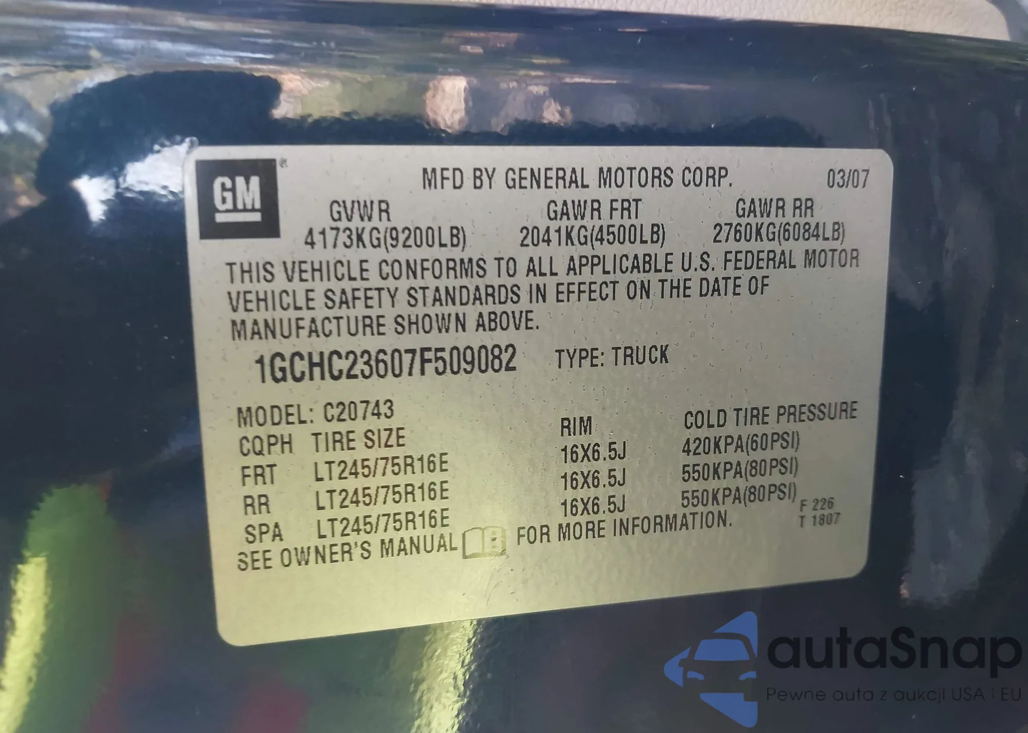 VIN: 1GCHC23607F509082