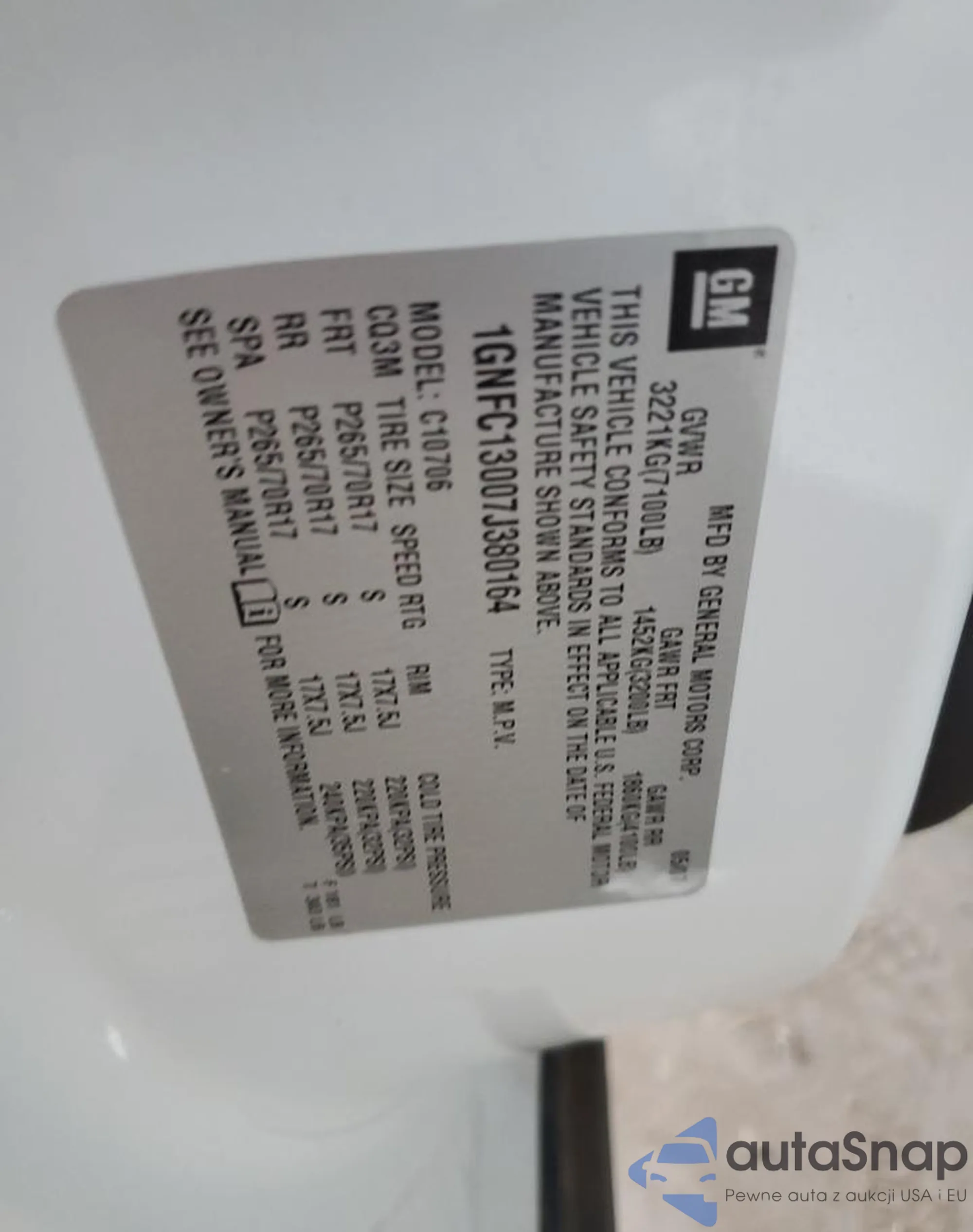 VIN: 1GNFC13007J380164