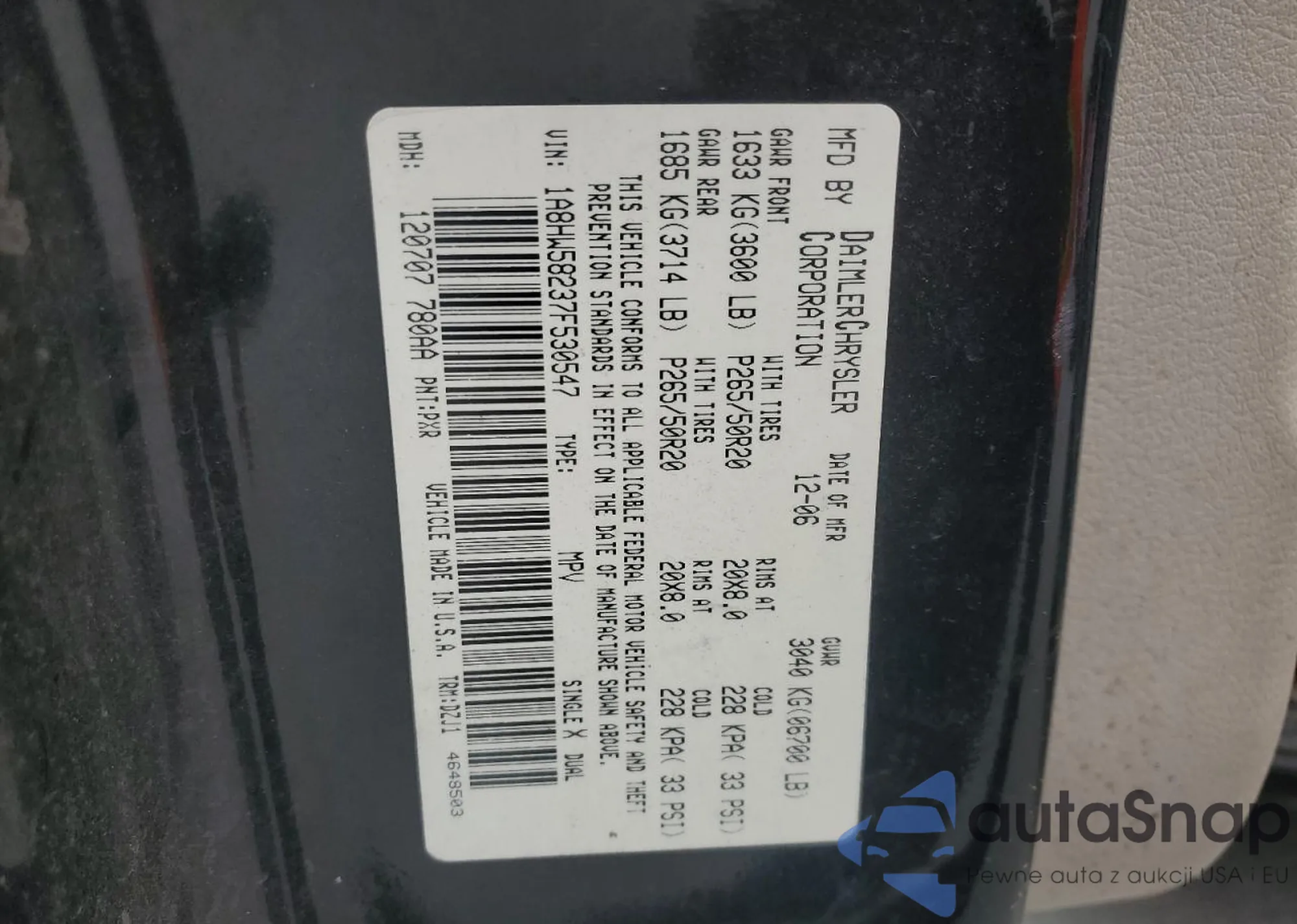 Автомобиль Chrysler Aspen 2007 (VIN 1A8HW58237F530547) ранее не участвовал в торгах. Документы чистые, пробег соответствует или ниже среднего по рынку. Продаётся страховой компанией — рекомендуем покупку. Доставка в порт займет около 6–8 недель.