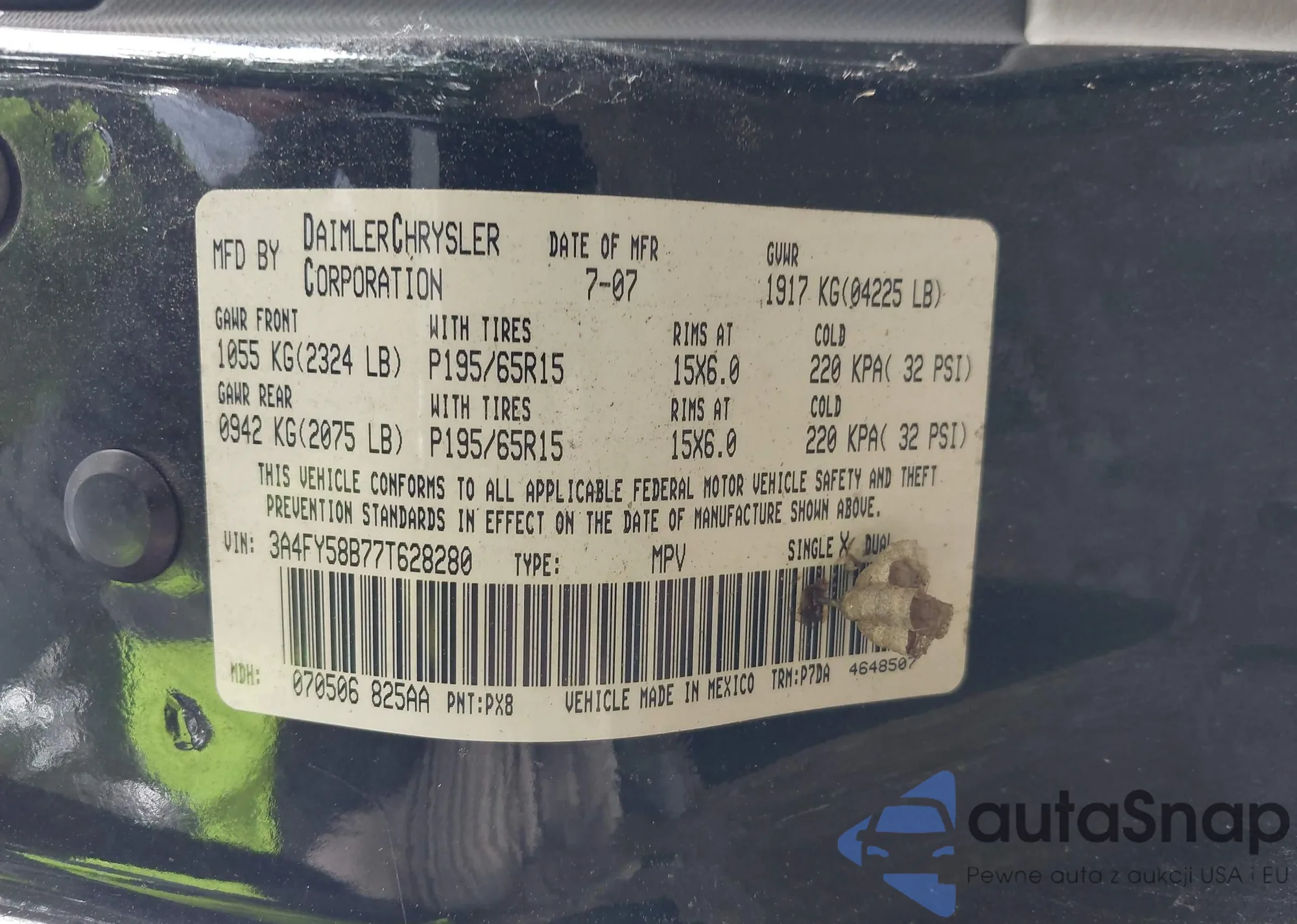 VIN: 3A4FY58B77T628280