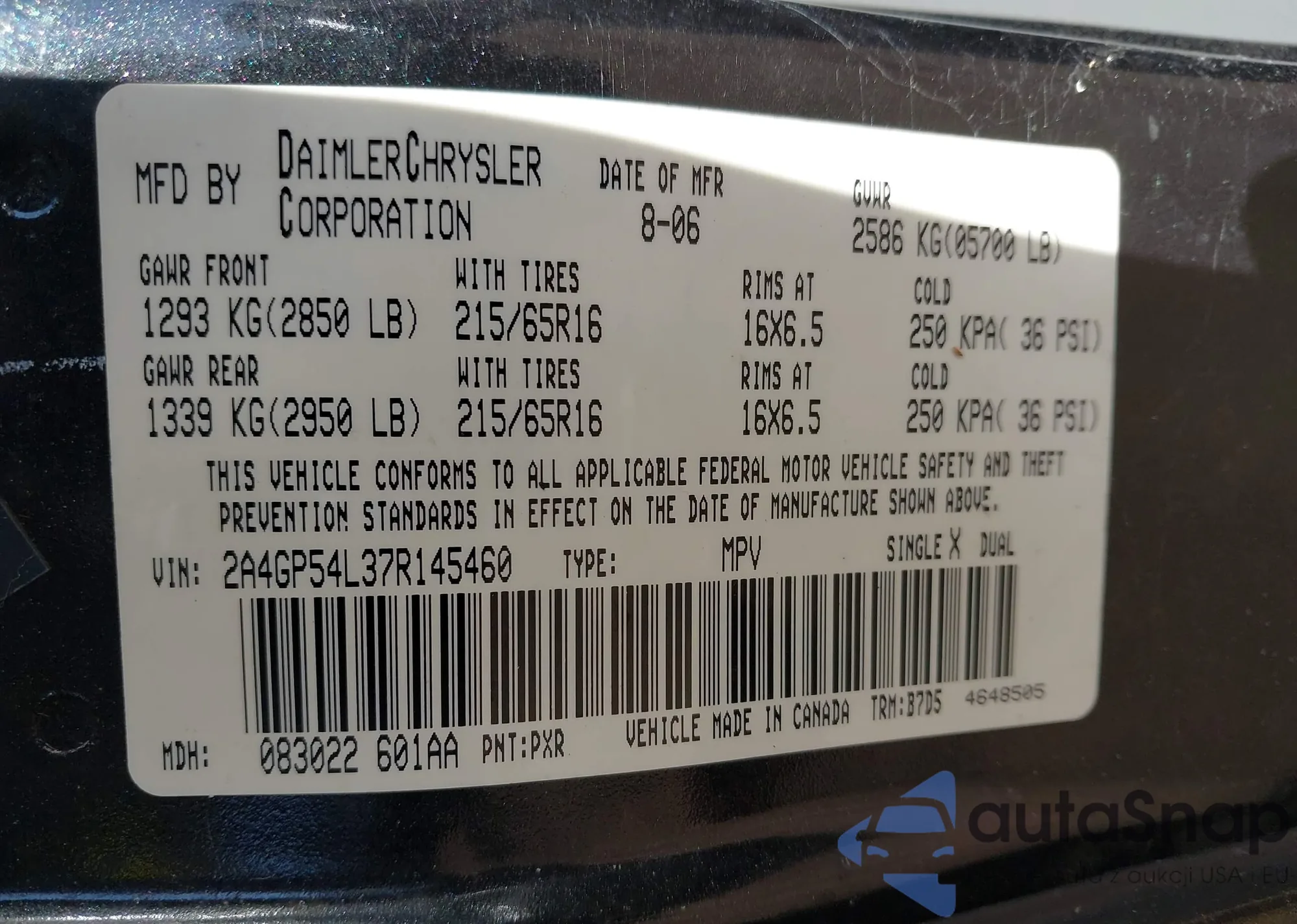 • VIN: 2GP54L37R145460