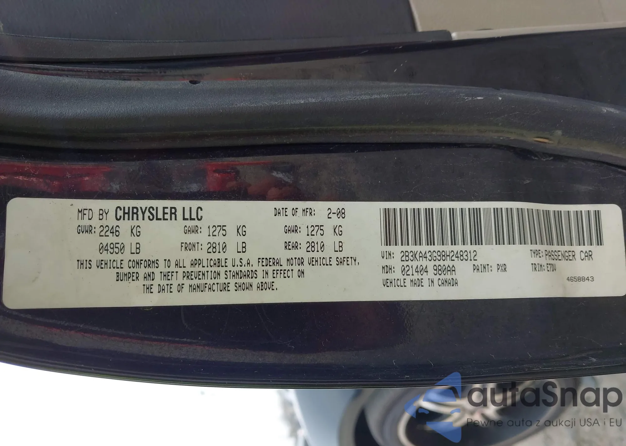 Автомобиль Dodge Charger 2007 (VIN 2B3KA43R77H660518) ранее не участвовал в торгах. Документы чистые, пробег соответствует или ниже среднего по рынку. Продаётся страховой компанией — рекомендуем покупку. Доставка в порт займет около 6–8 недель.