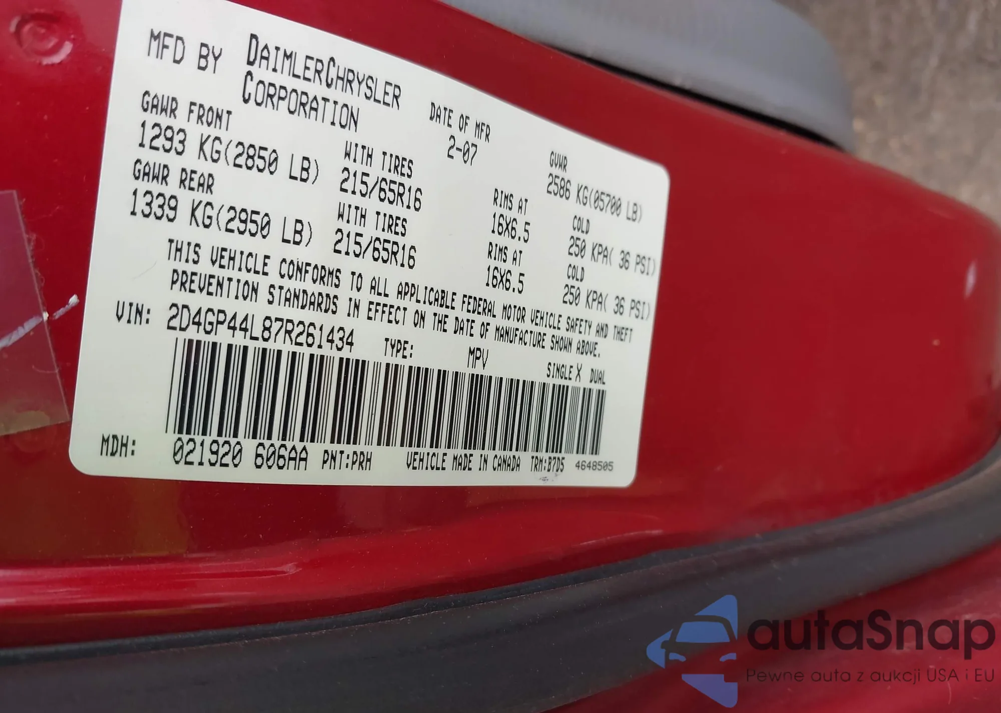 VIN: 2D4GP44L87R261434