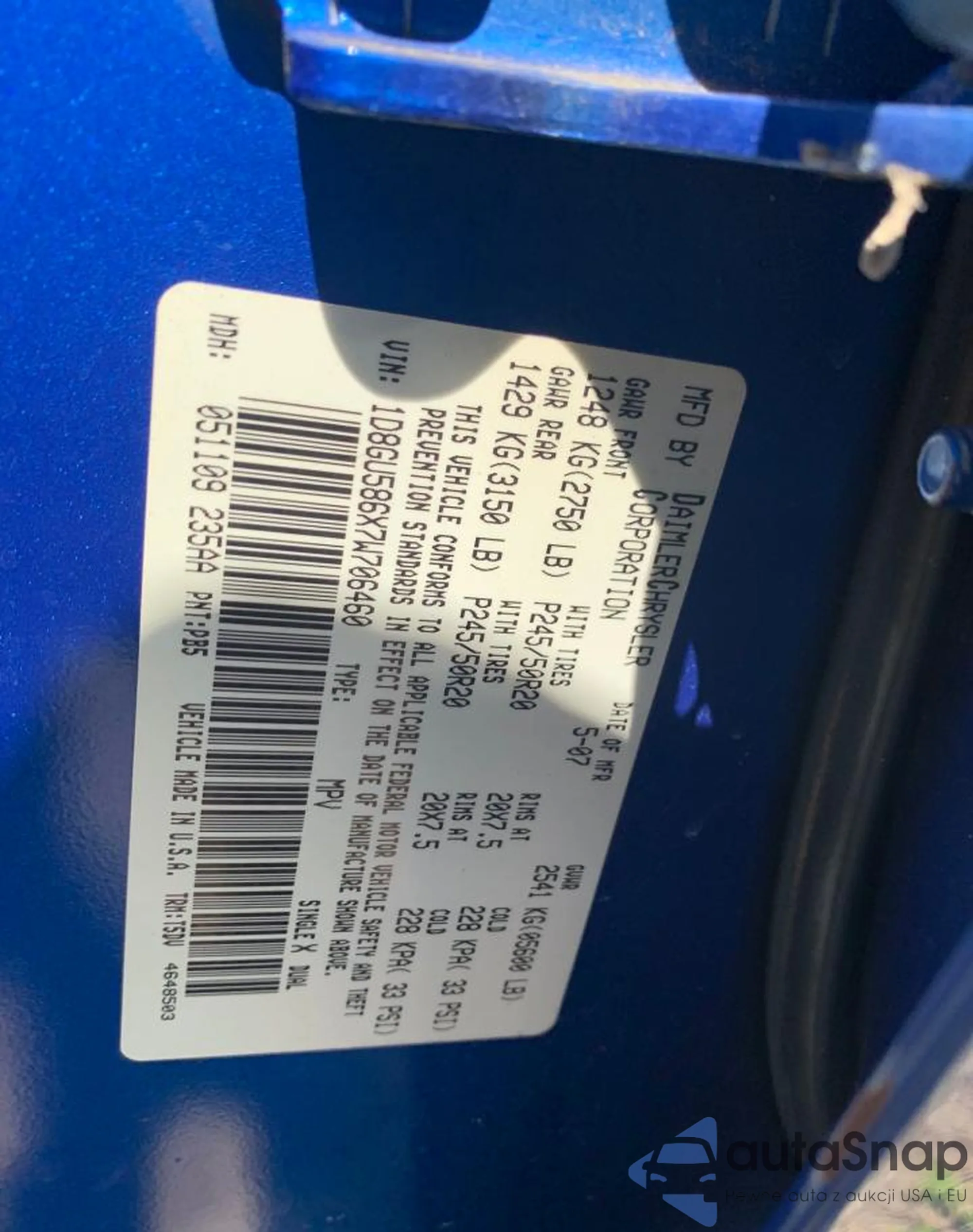 VIN: 1D8GU586X7W706460
