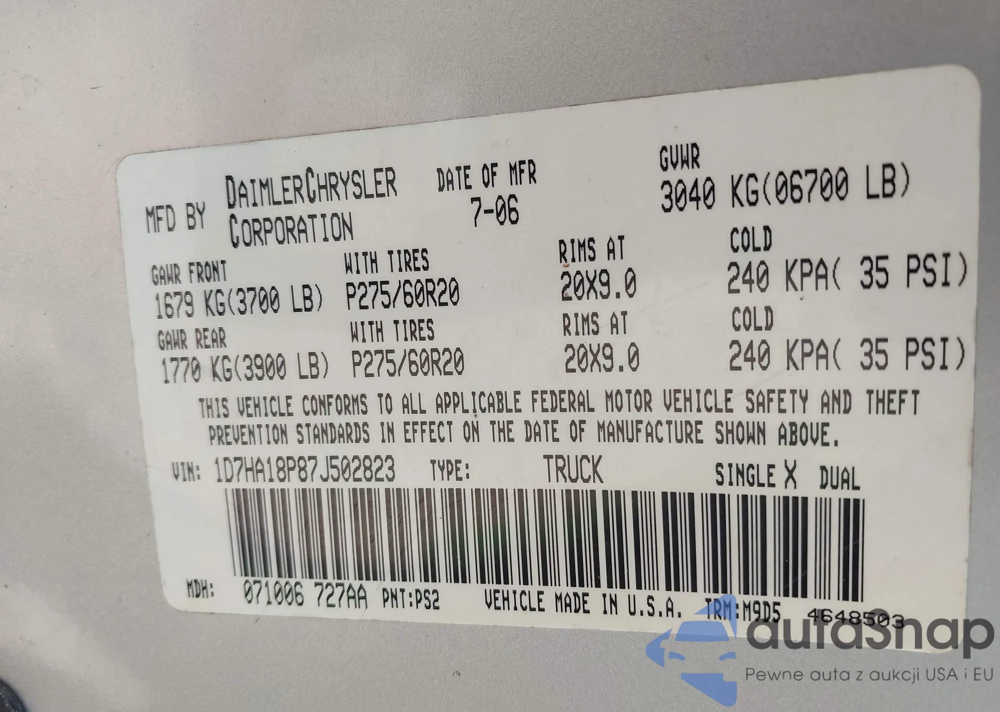 • VIN: 1D7HA18P87J502823