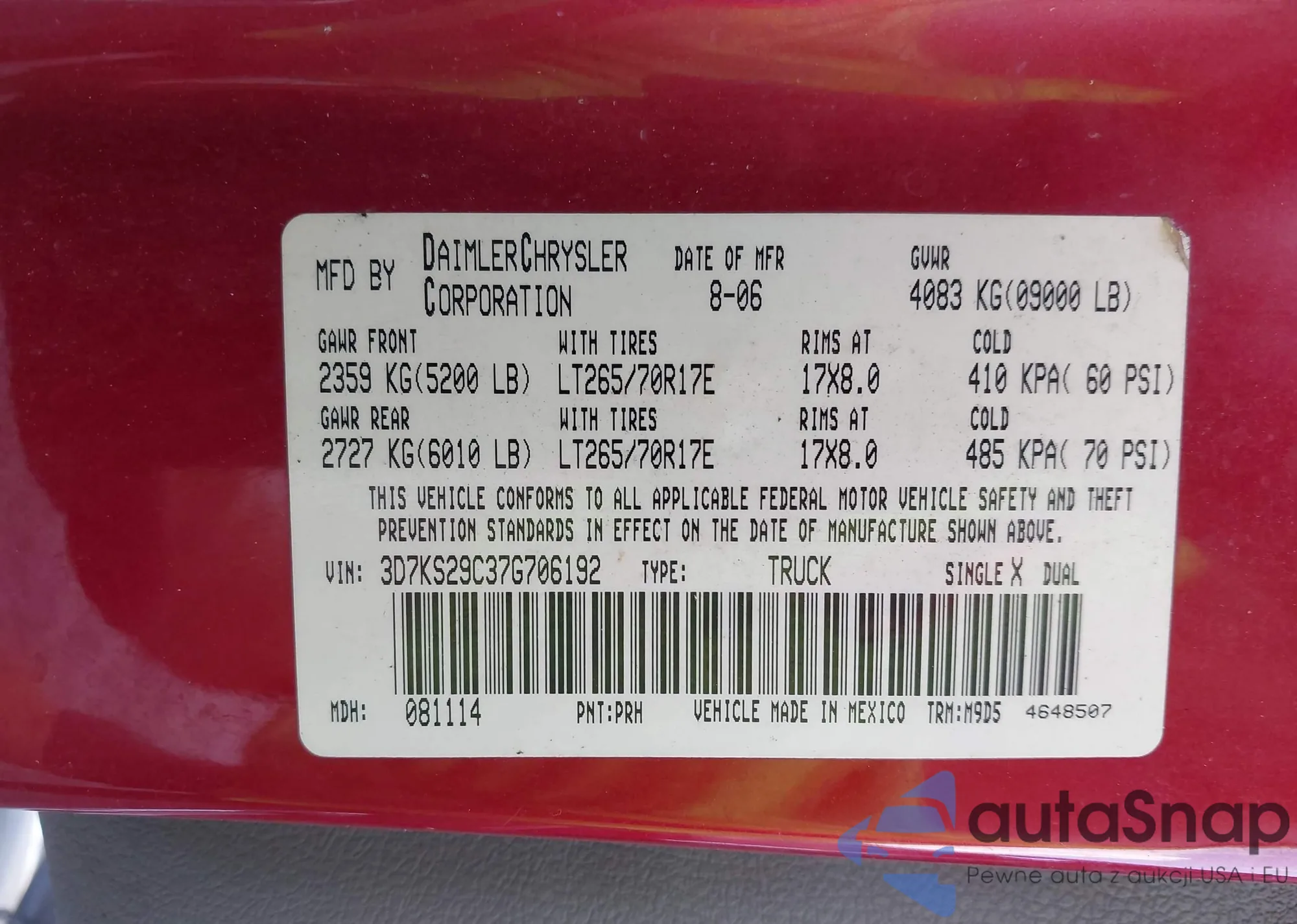 VIN: 3D7KS29C37G706192
