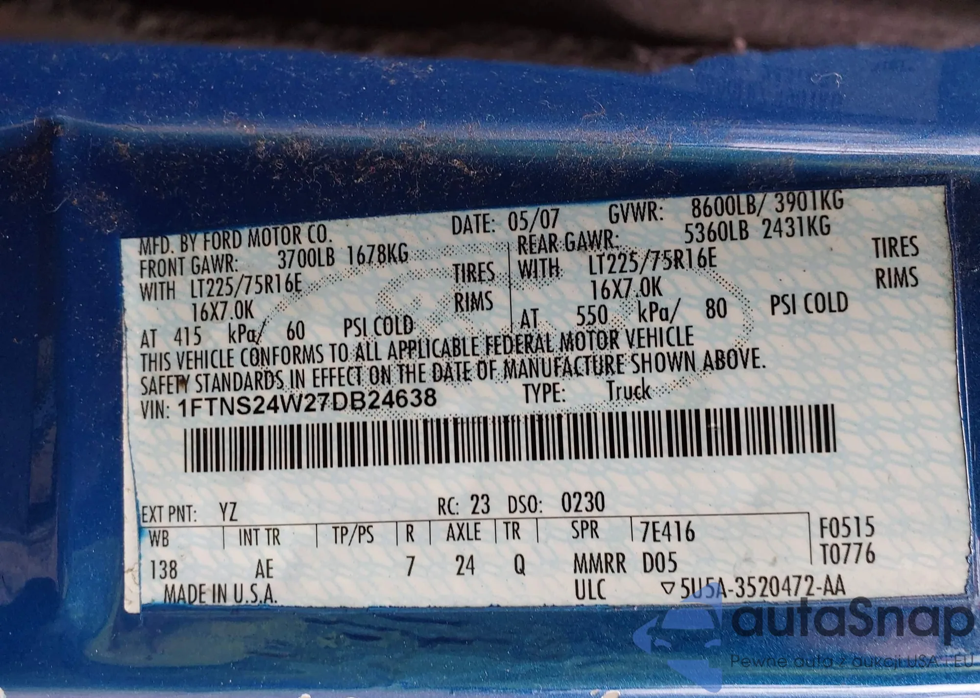 VIN: 1FTNS24W27DB24638