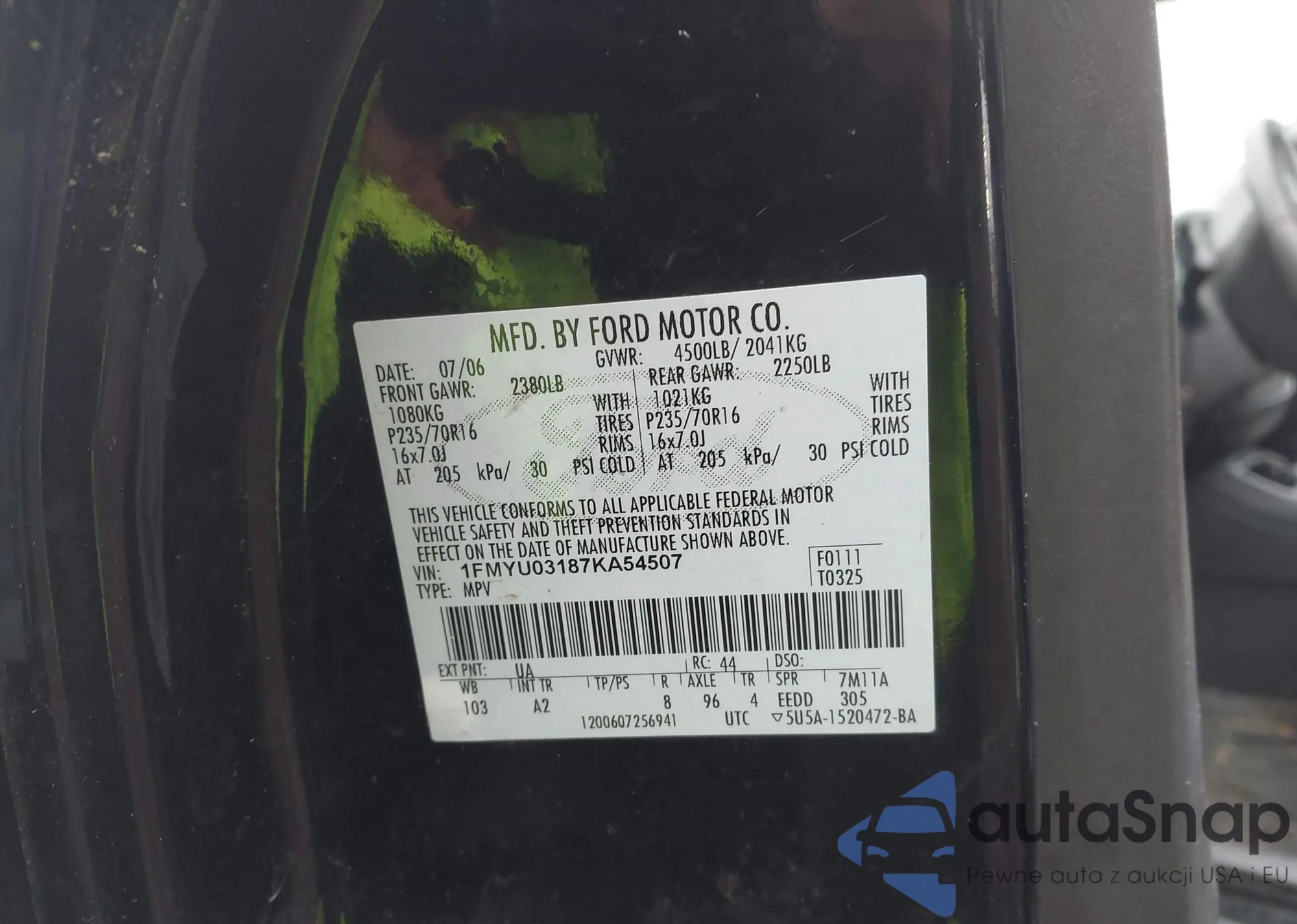 VIN: 1FMYU03187KA54507
