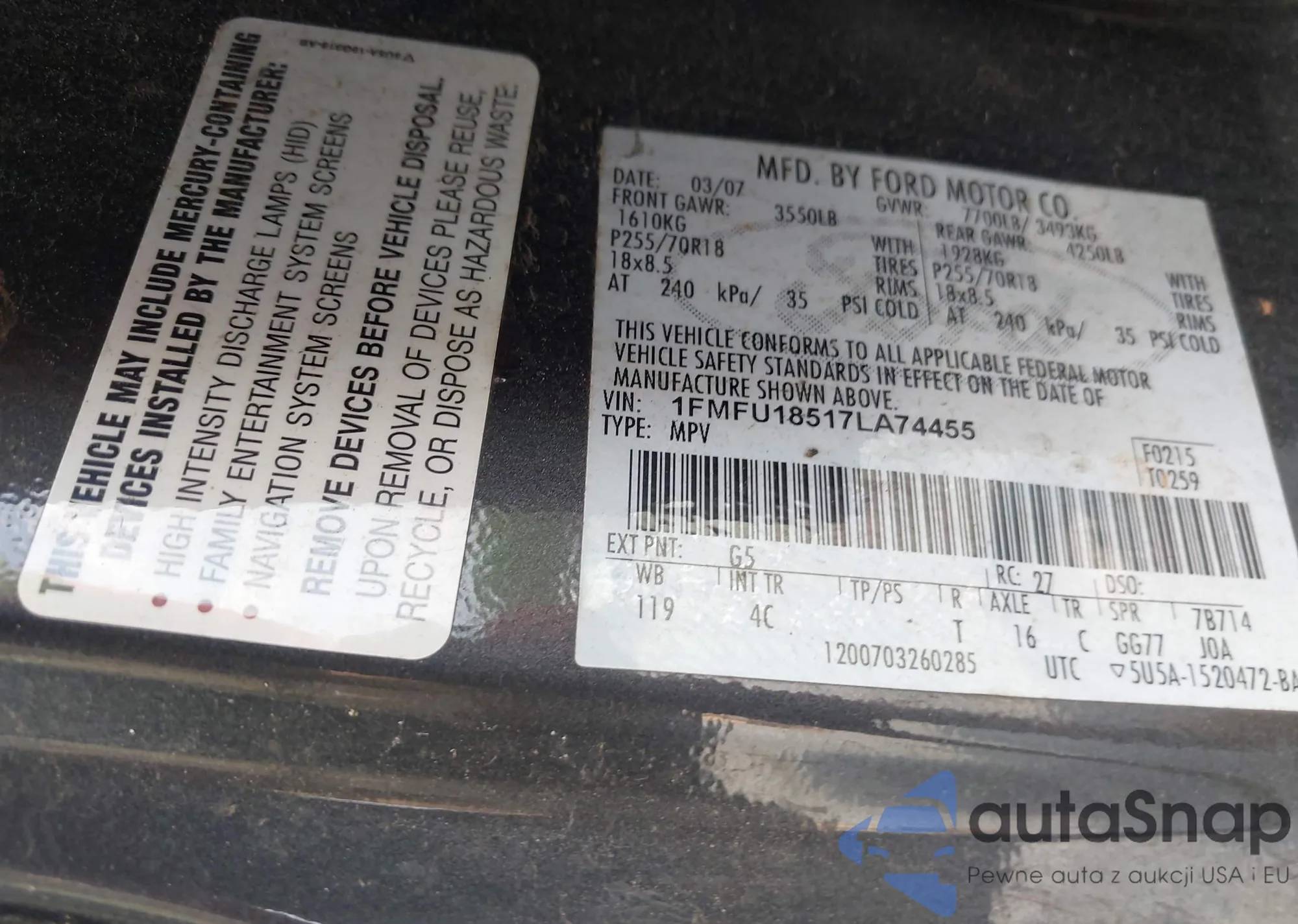 VIN: 1FMFU18517LA74455