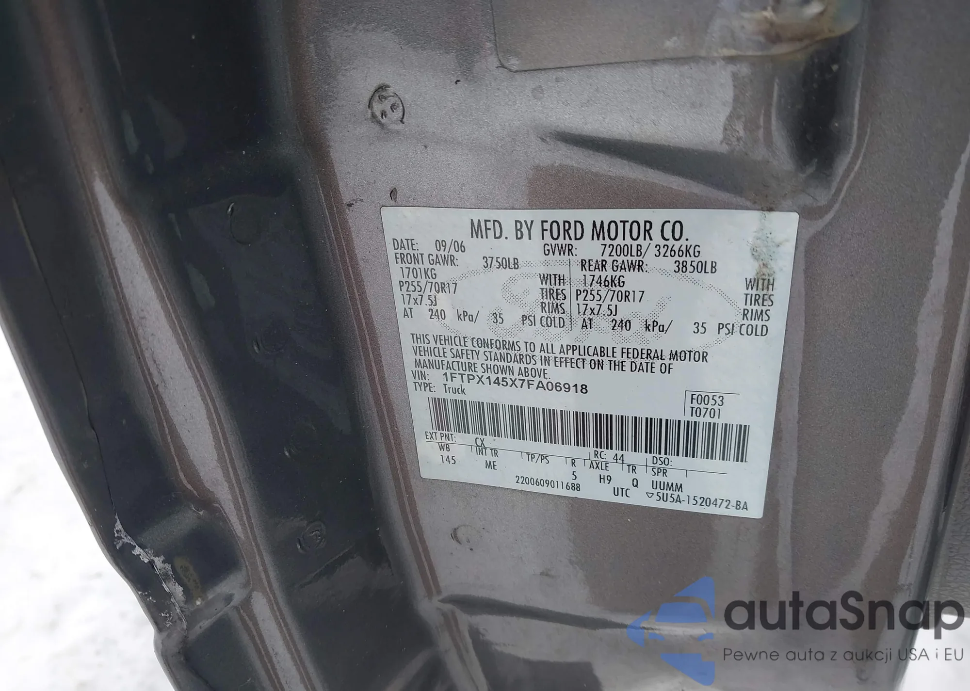 VIN: 1FTPX145X7FA06918